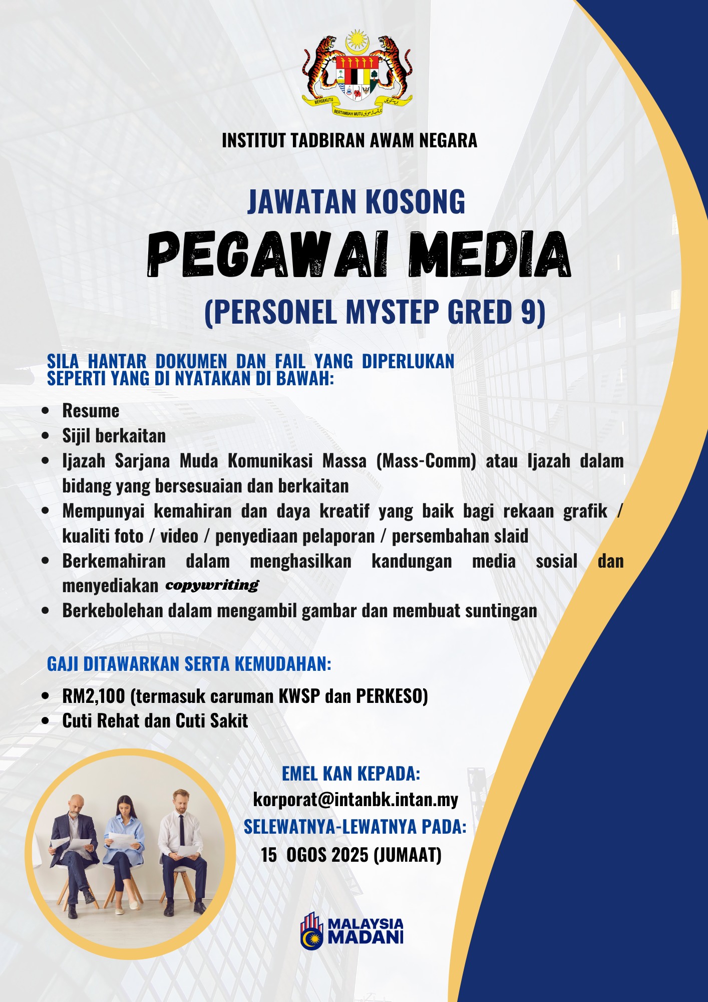 Iklan Jawatan Institut Tadbiran Awam Negara (INTAN)