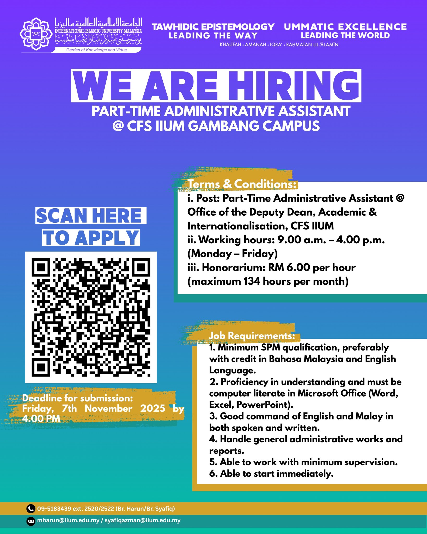 Iklan Jawatan International Islamic University Malaysia (IIUM)