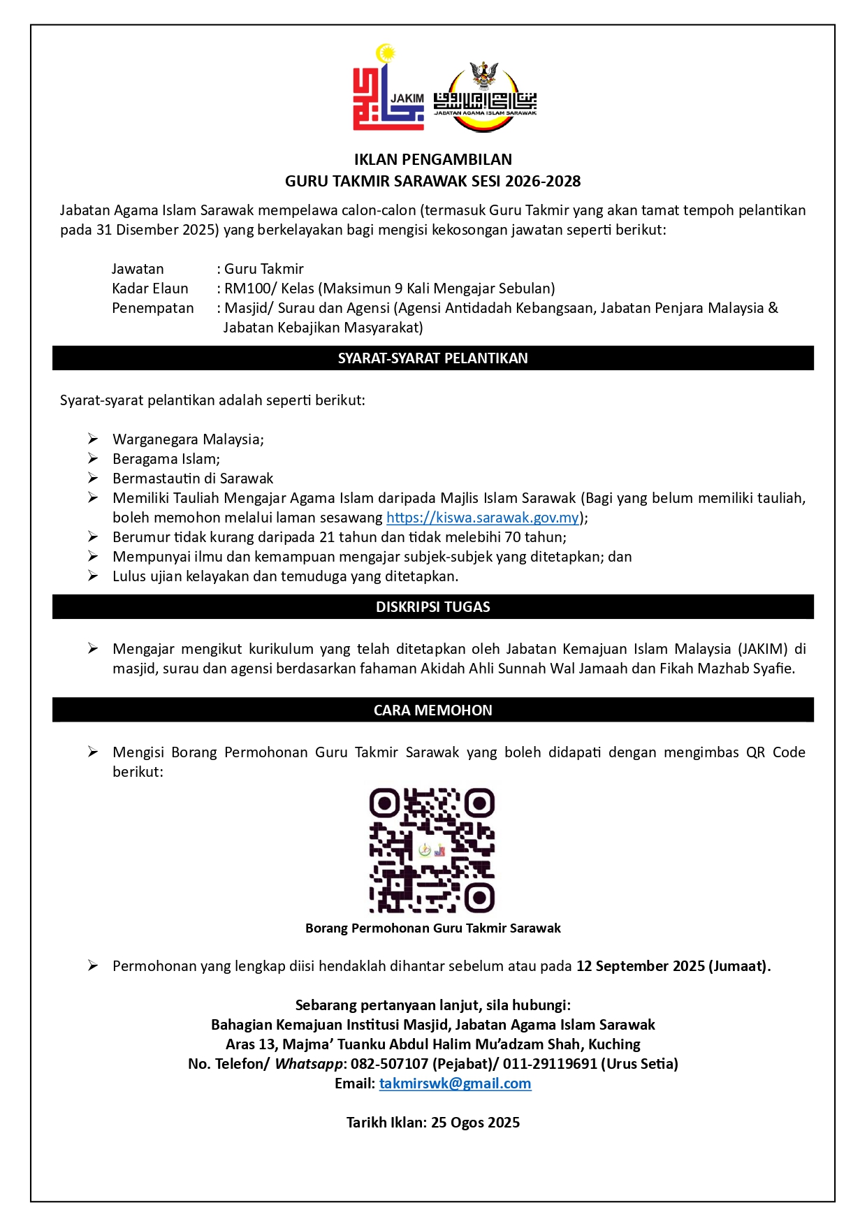 Iklan Jawatan Jabatan Agama Islam Sarawak
