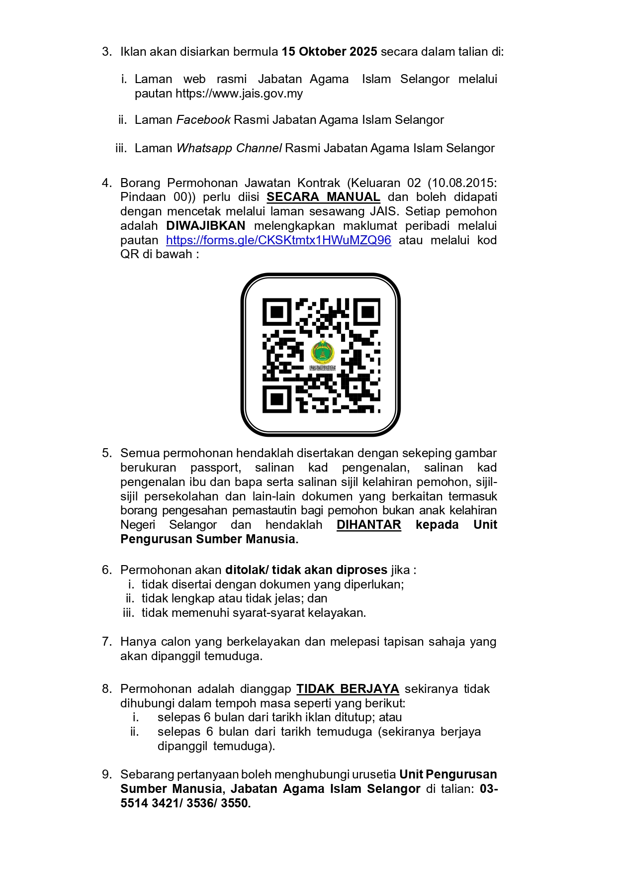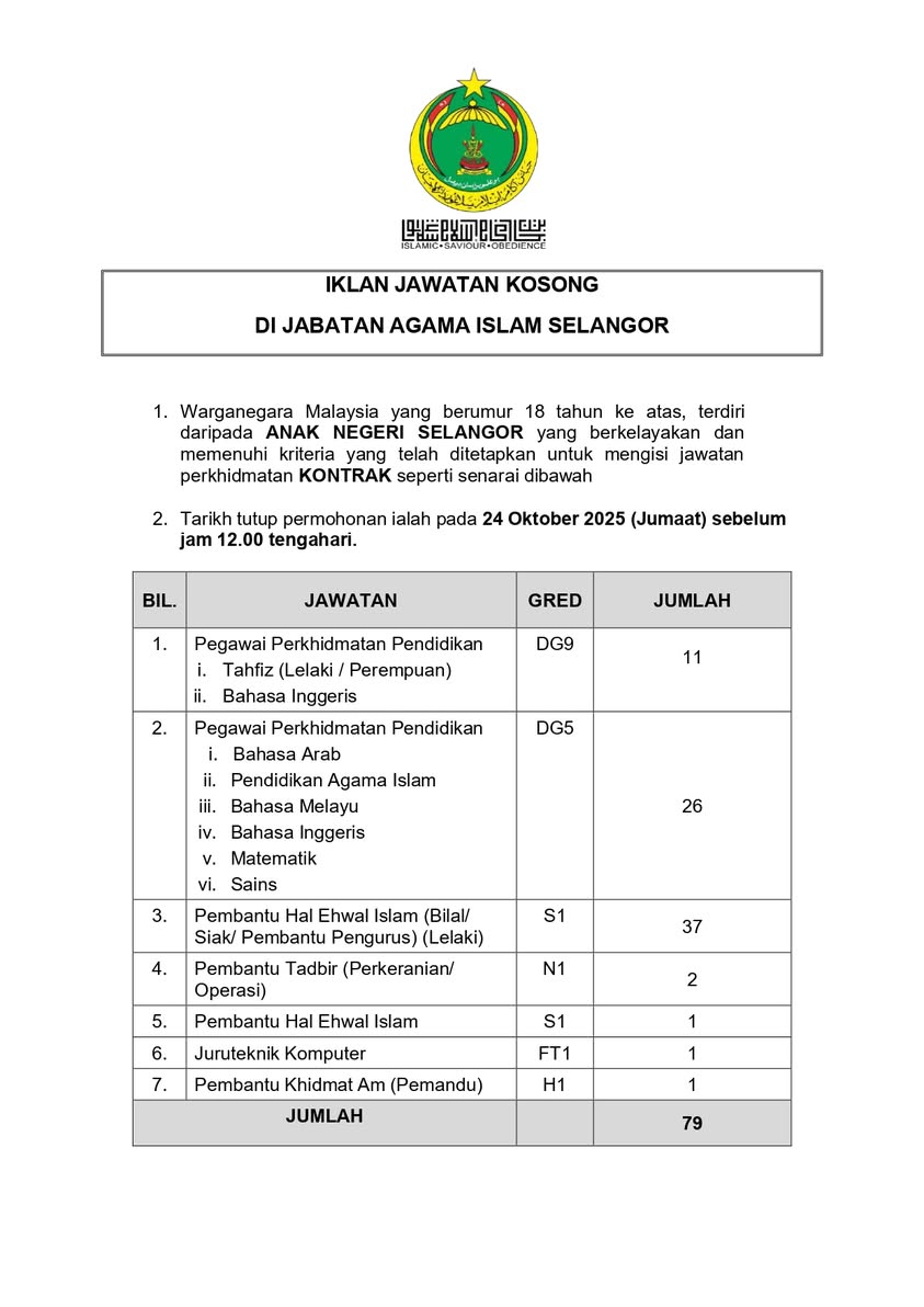 Iklan Jawatan Jabatan Agama Islam Selangor (JAIS)