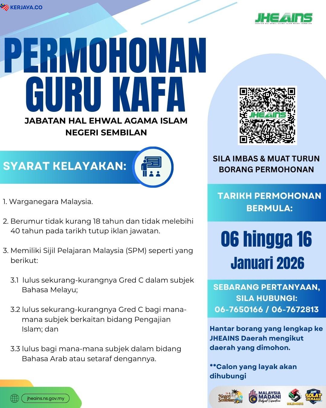 Iklan Jawatan Jabatan Hal Ehwal Agama Islam Negeri Sembilan (JHEAINS)