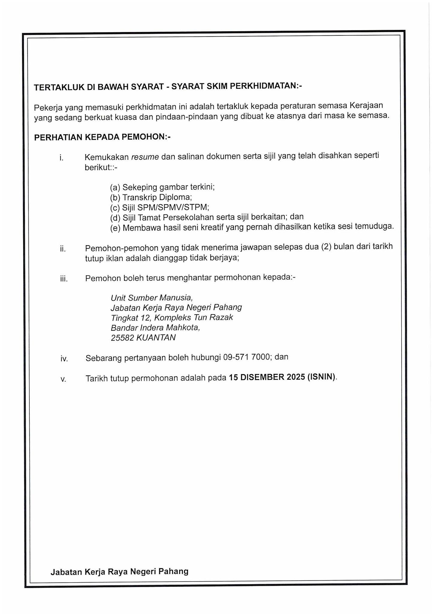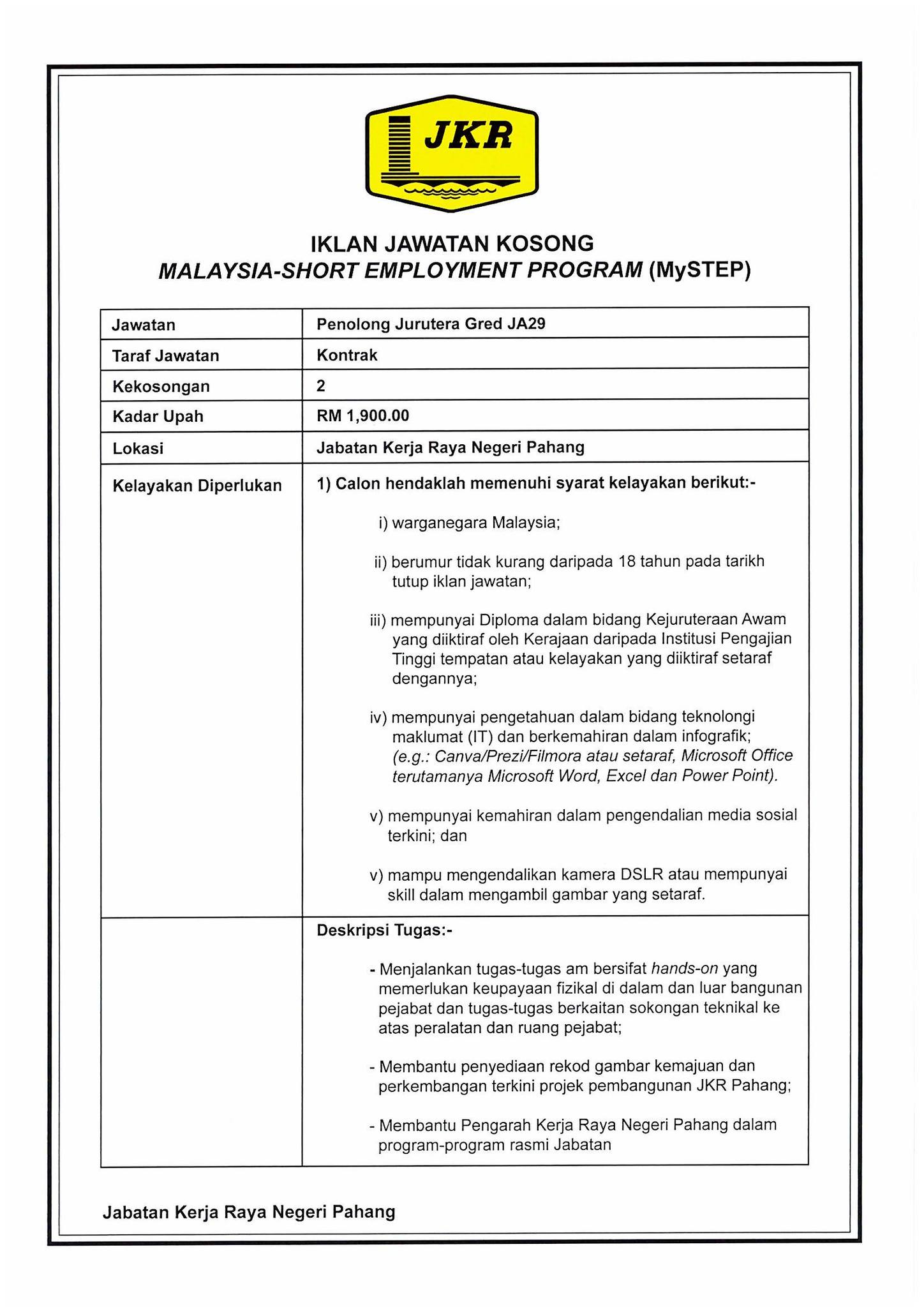Iklan Jawatan Jabatan Kerja Raya (JKR)