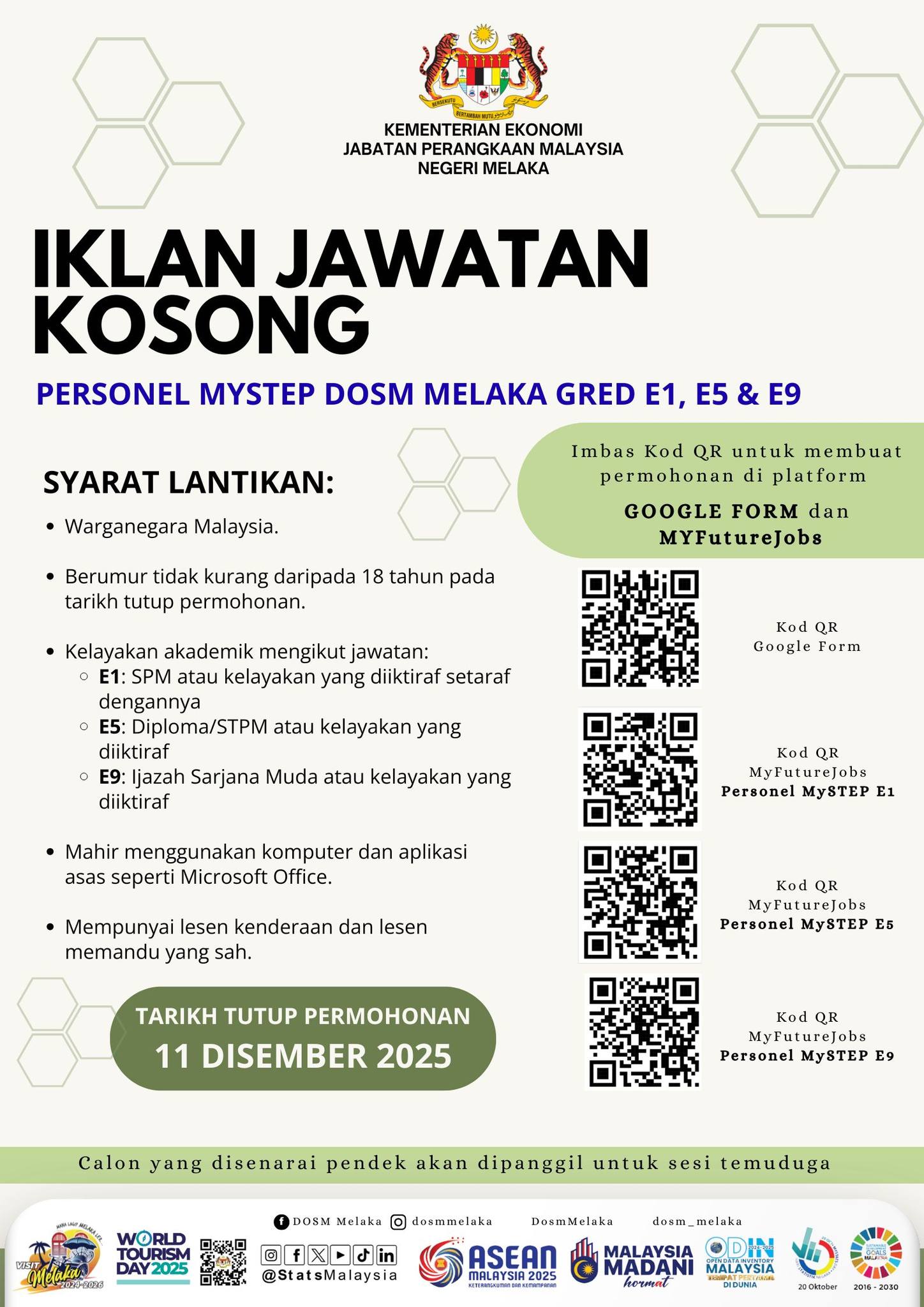 Iklan Jawatan Jabatan Perangkaan Malaysia Negeri Melaka
