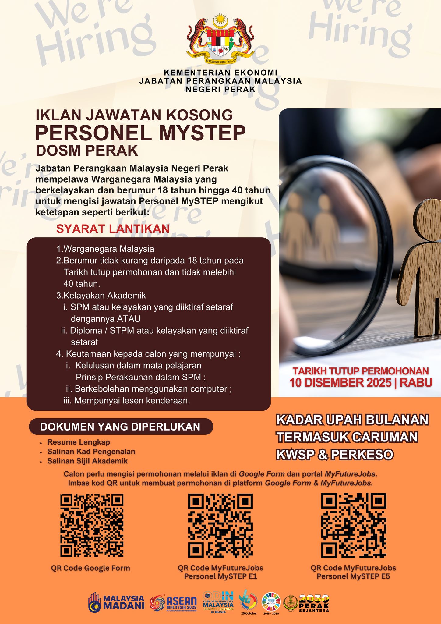 Iklan Jawatan Jabatan Perangkaan Malaysia Negeri Perak
