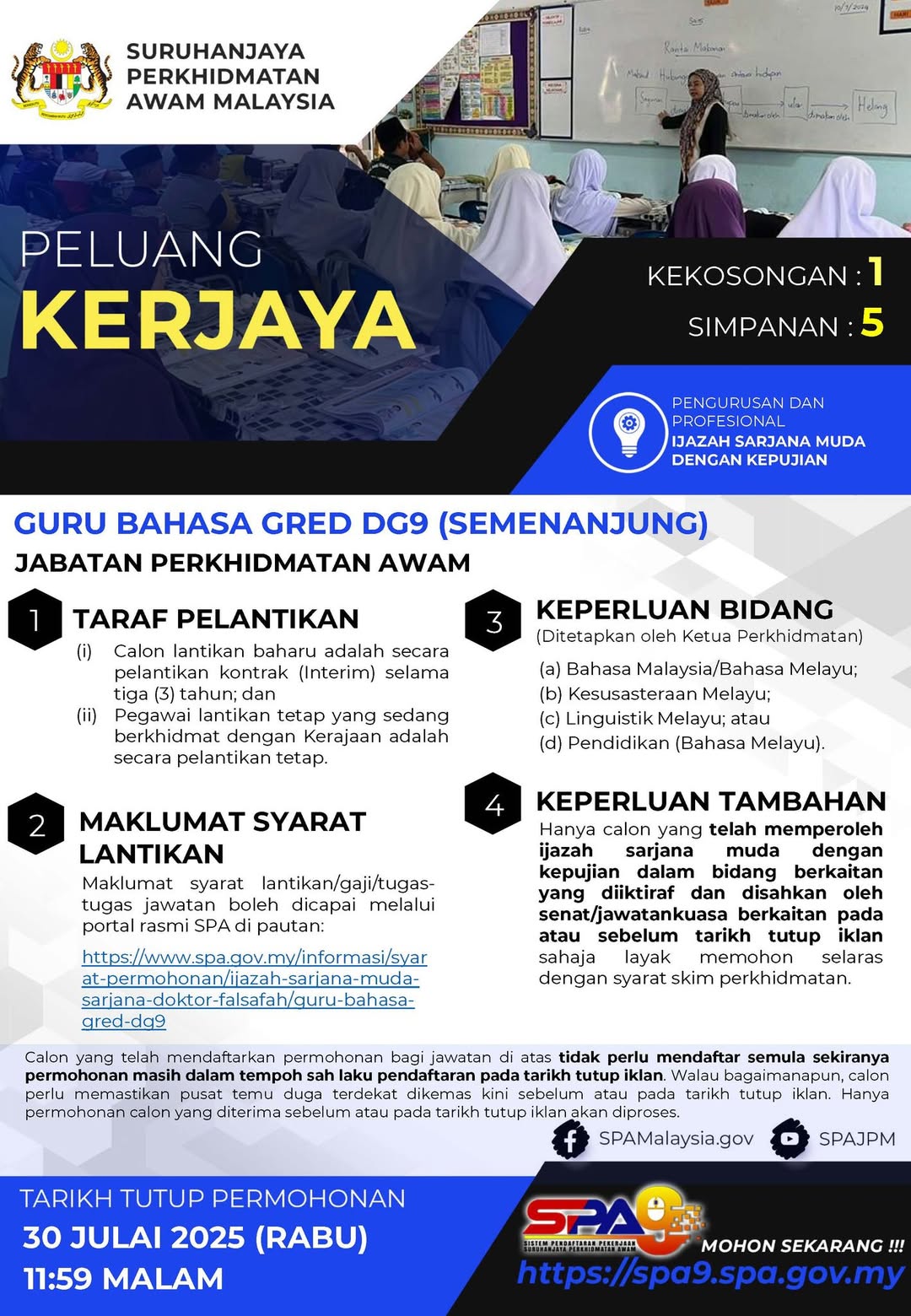 Iklan Jawatan Jabatan Perkhidmatan Awam Malaysia (JPA)