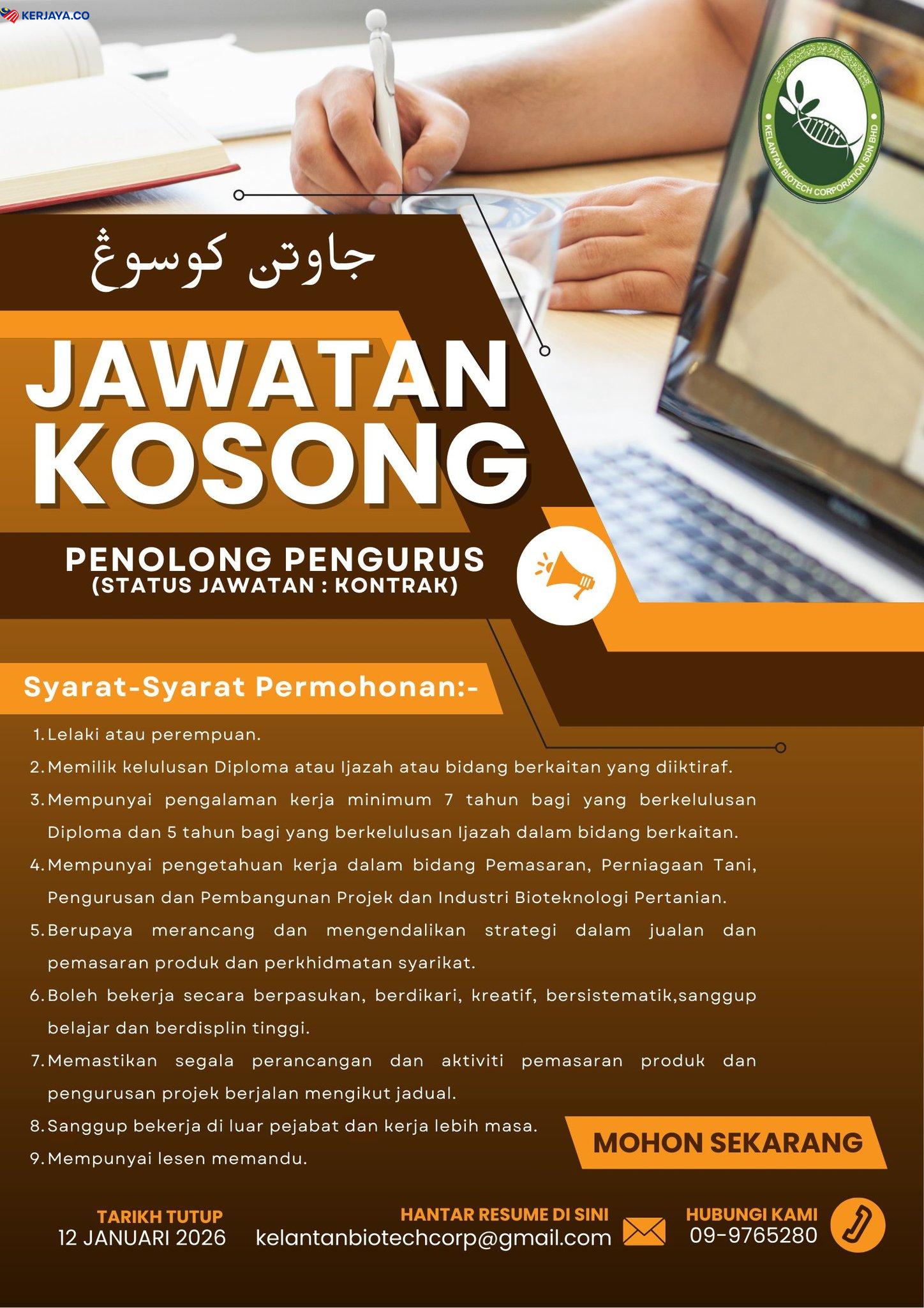 Iklan Jawatan Kelantan Biotech Corporation Sdn Bhd
