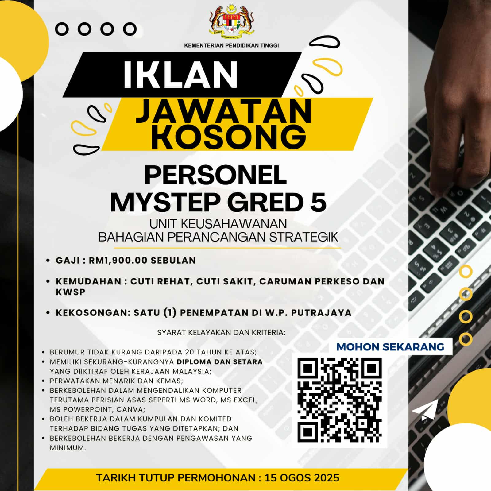 Iklan Jawatan Kementerian Pendidikan Tinggi (KPT)