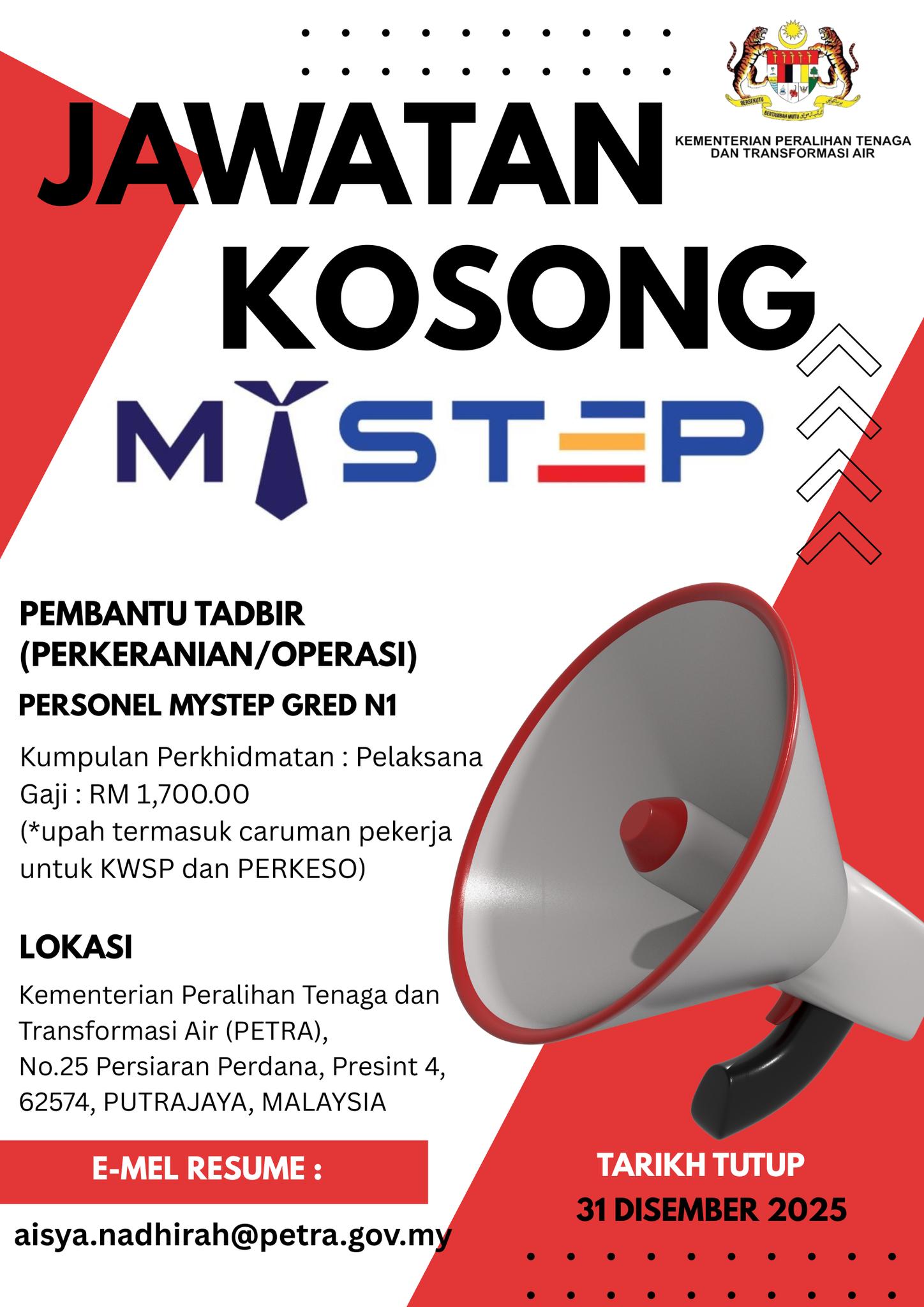 Iklan Jawatan Kementerian Peralihan Tenaga dan Transformasi Air (PETRA)
