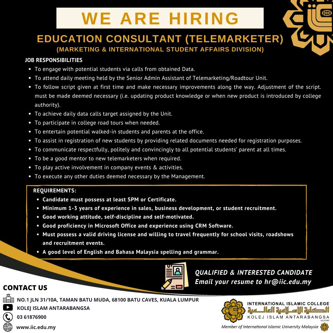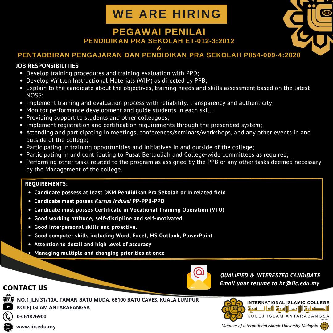 Iklan Jawatan Kolej Islam Antarabangsa – IIC