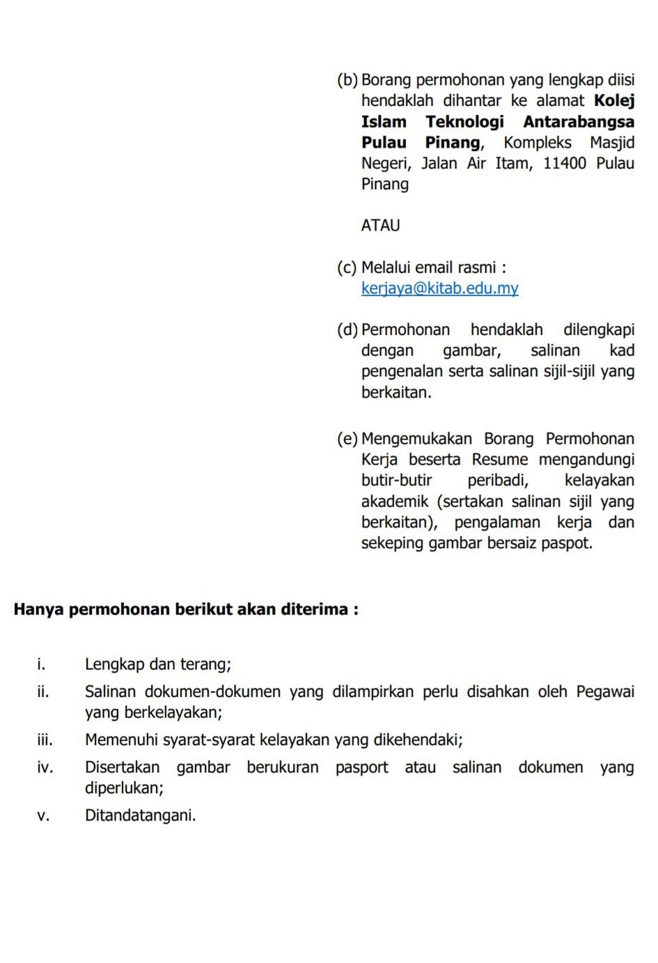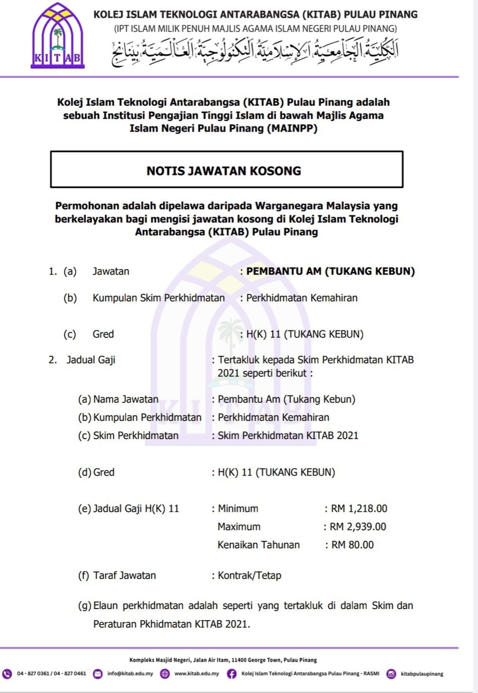 Iklan Jawatan Kolej Islam Teknologi Antarabangsa (KITAB)