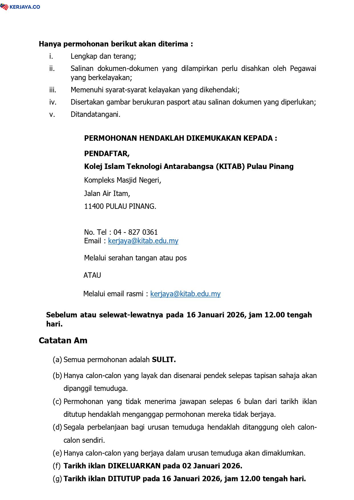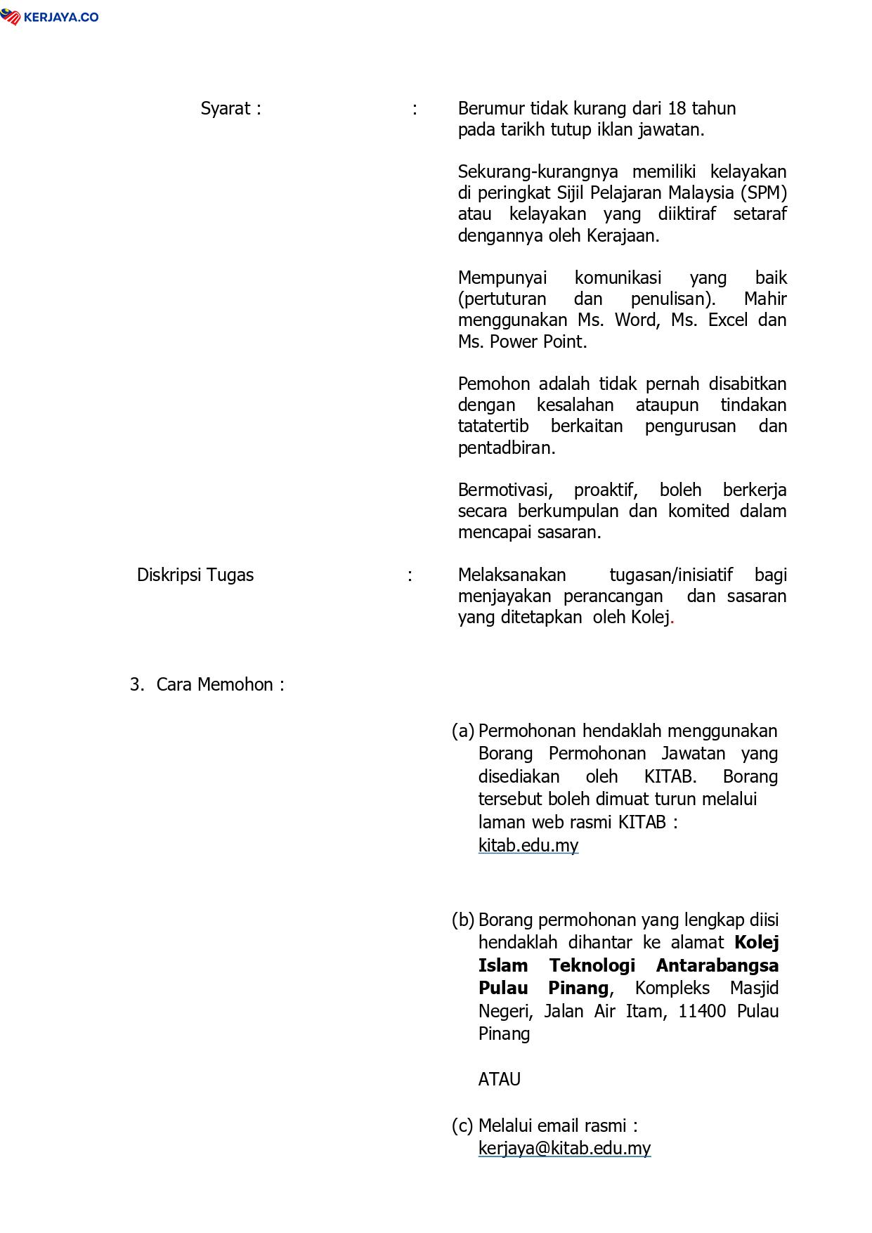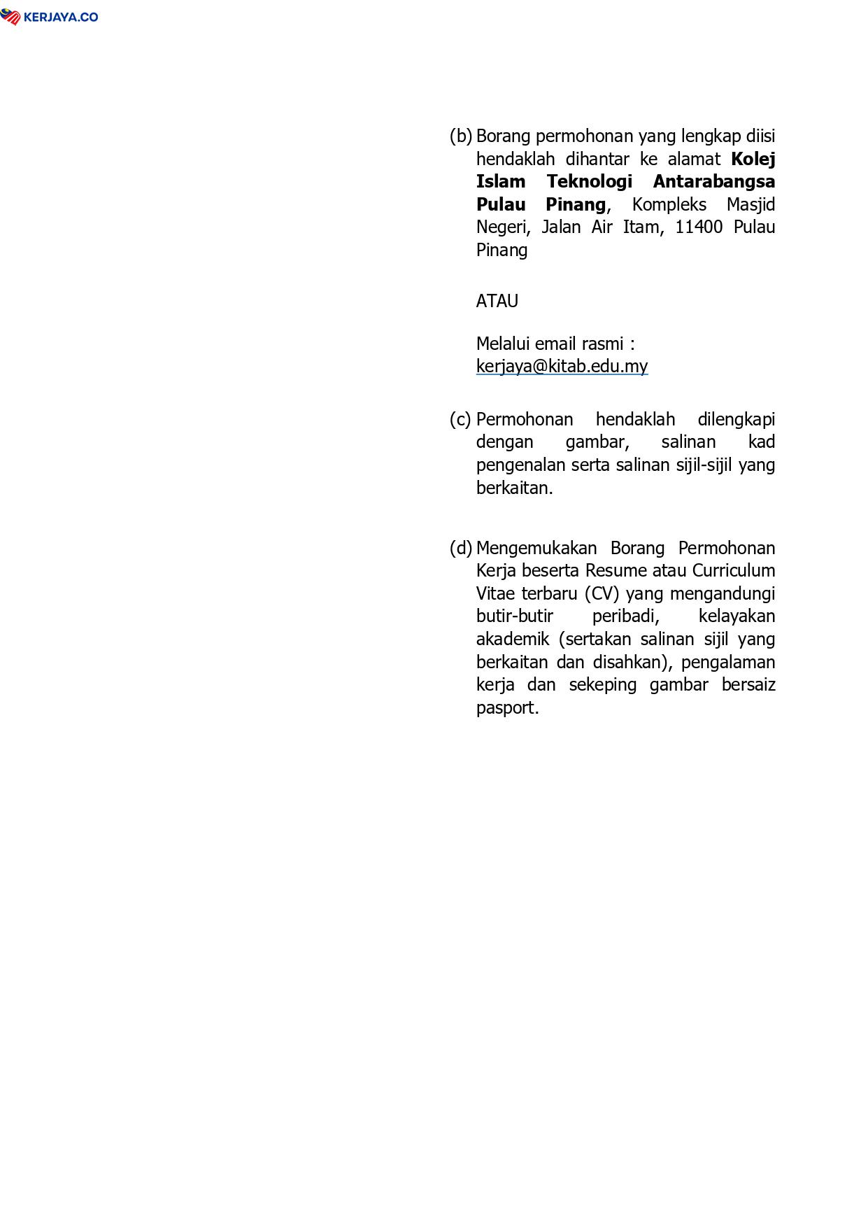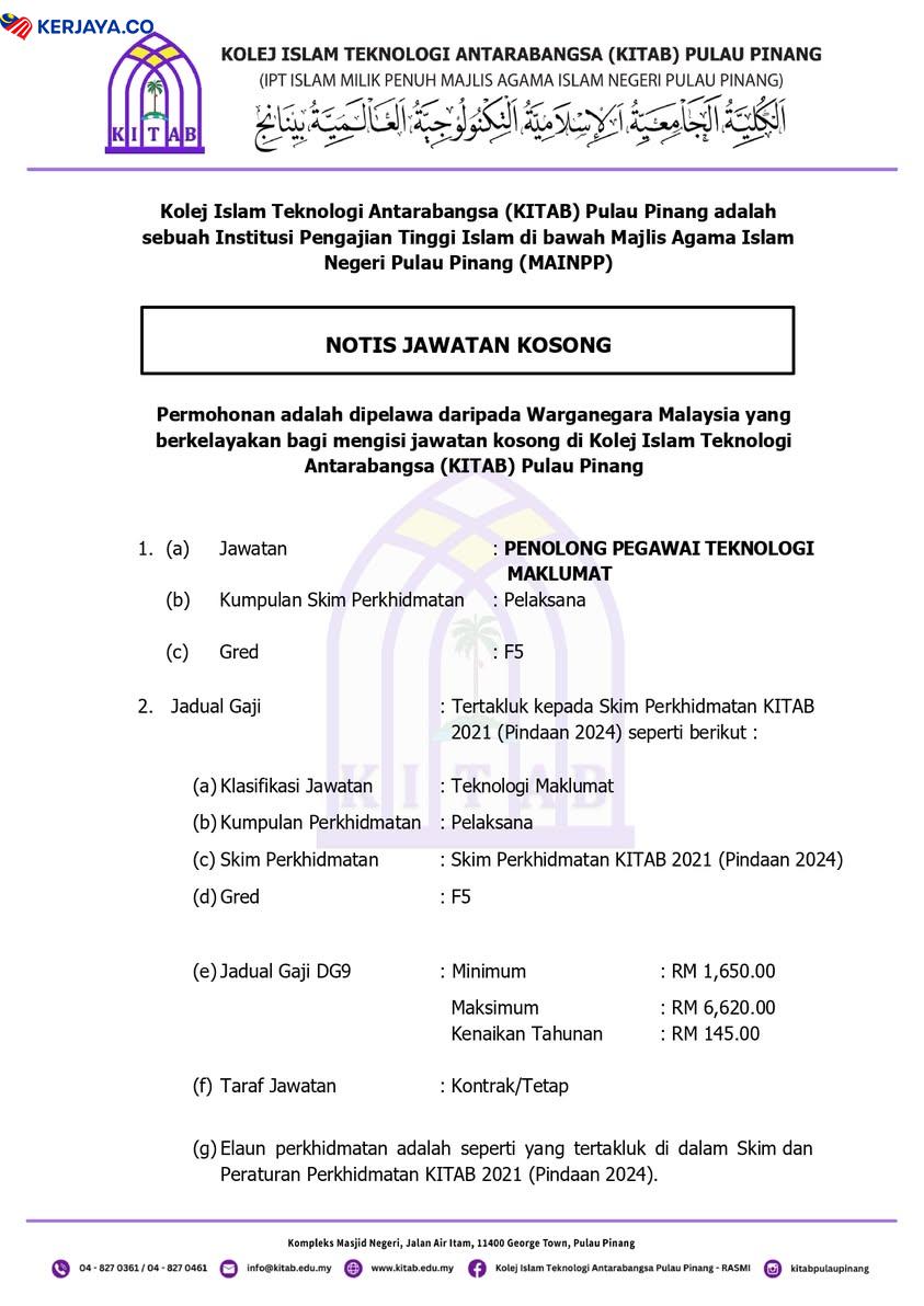 Iklan Jawatan Kolej Islam Teknologi Antarabangsa Pulau Pinang