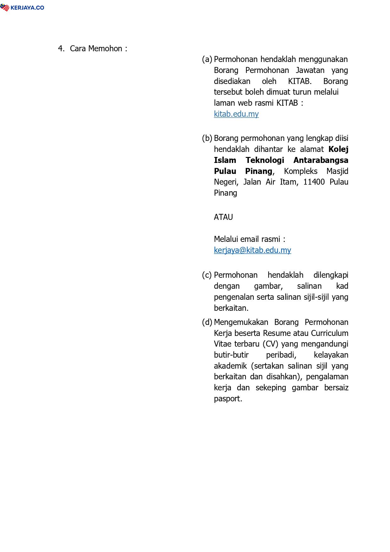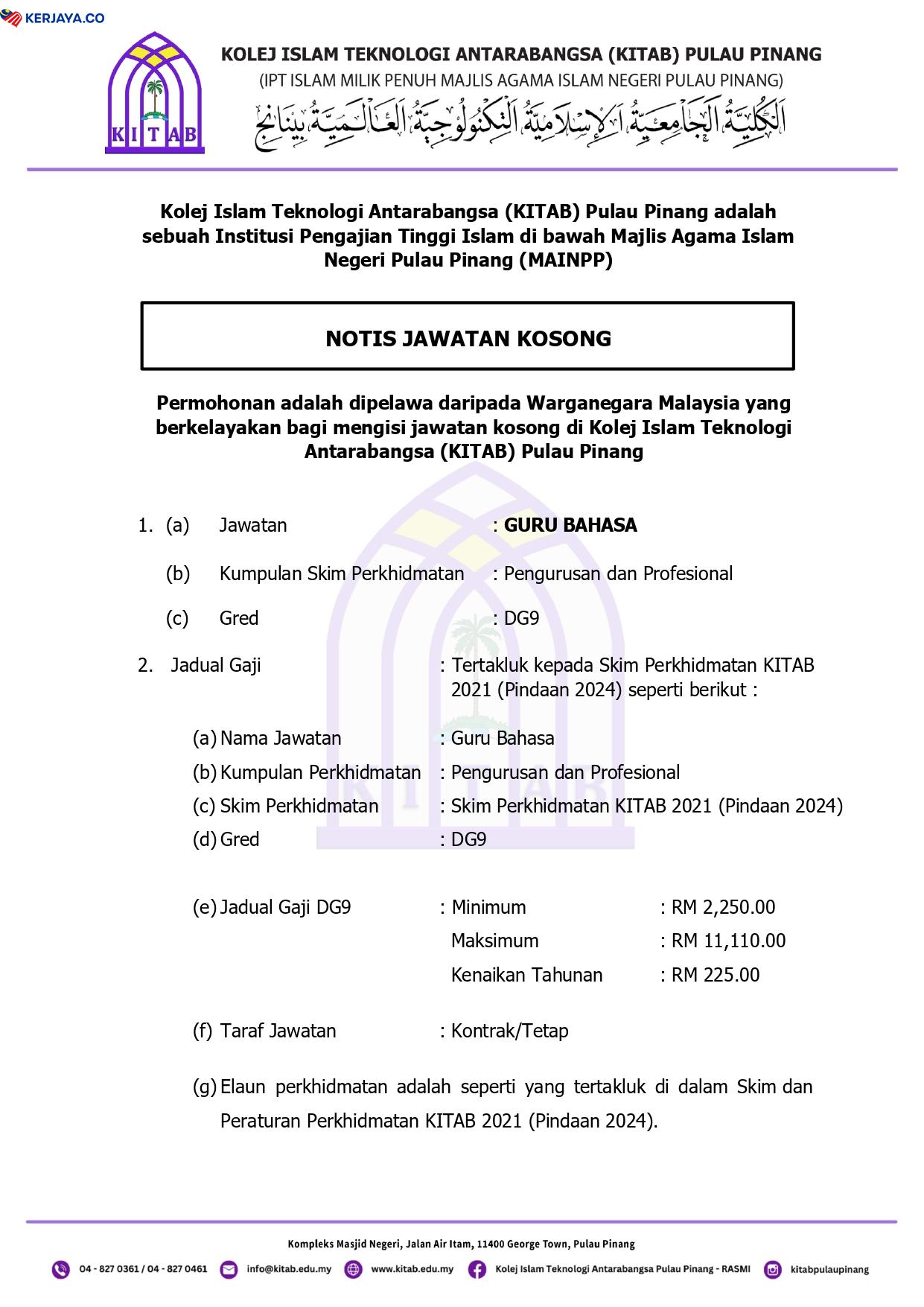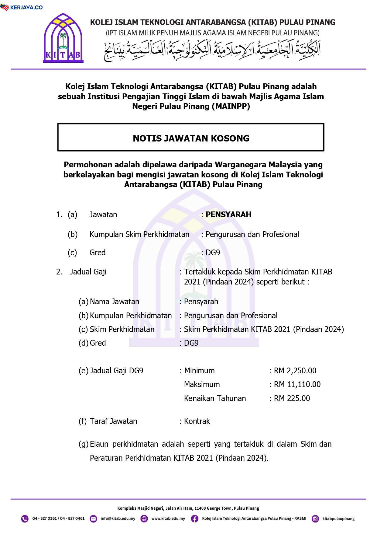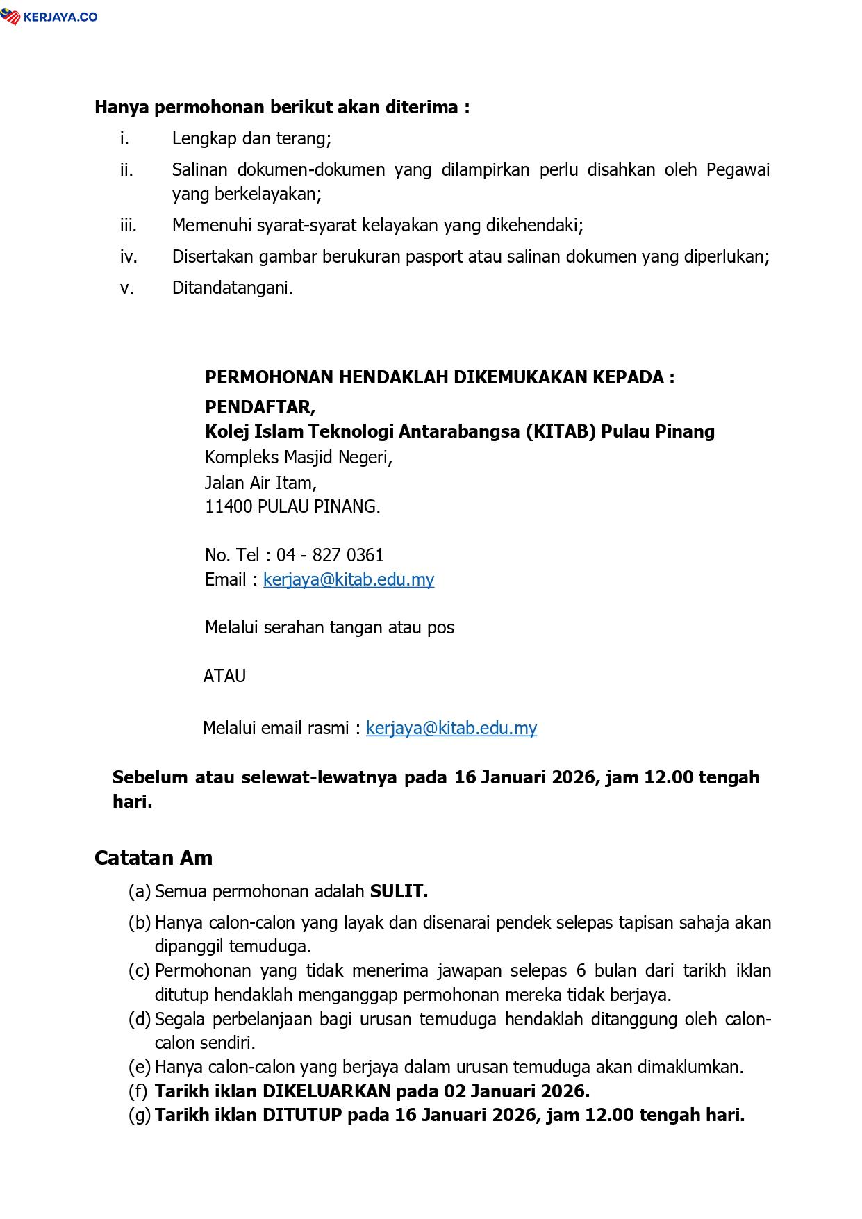 Iklan Jawatan Kolej Islam Teknologi Antarabangsa Pulau Pinang