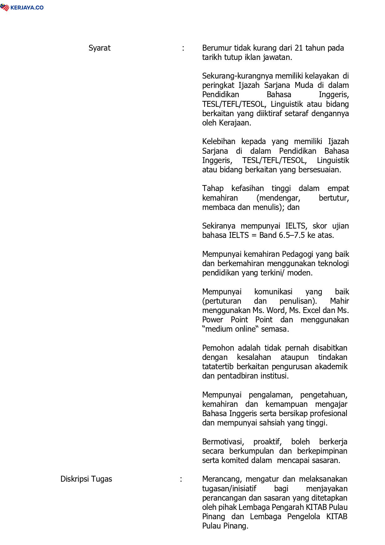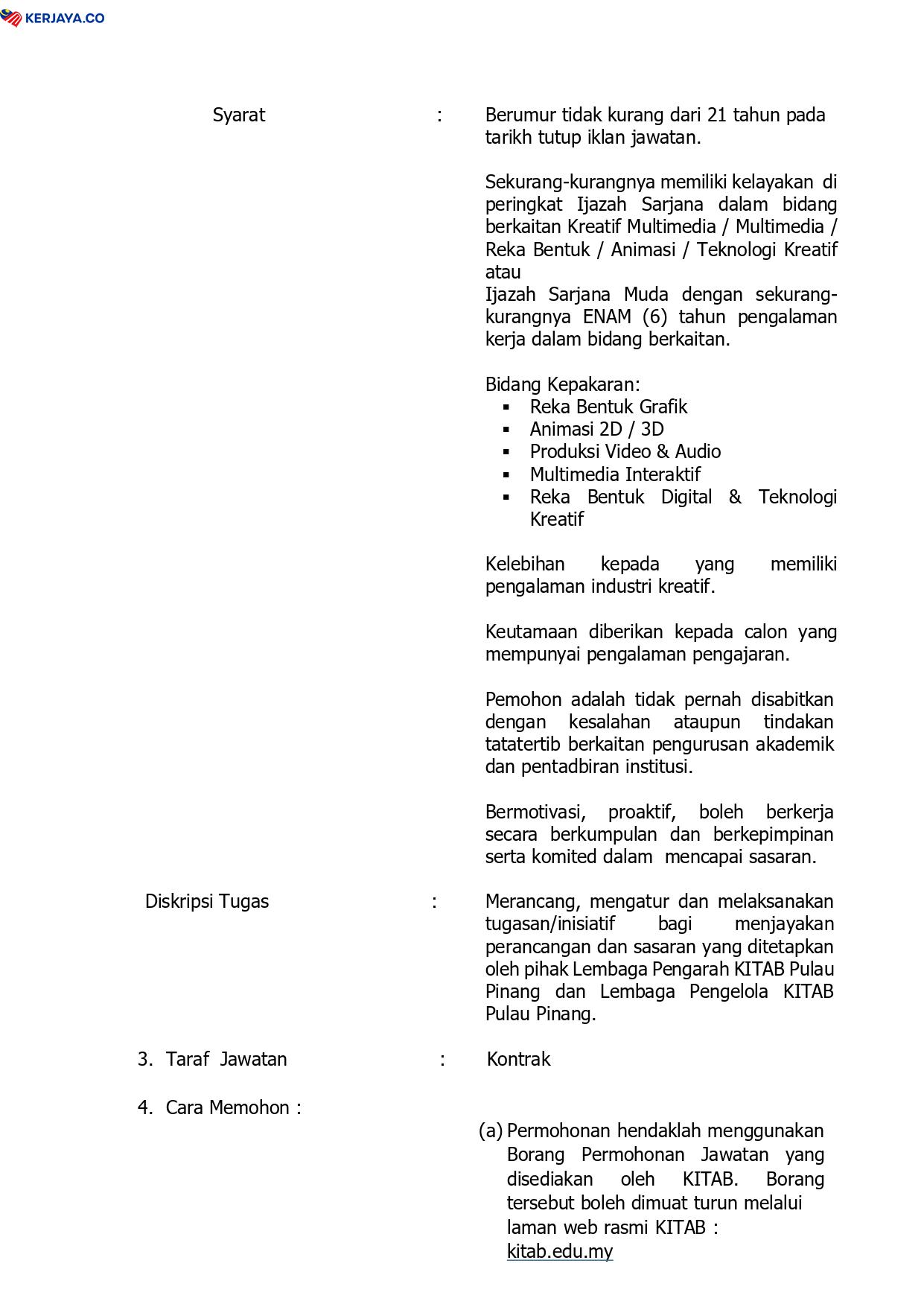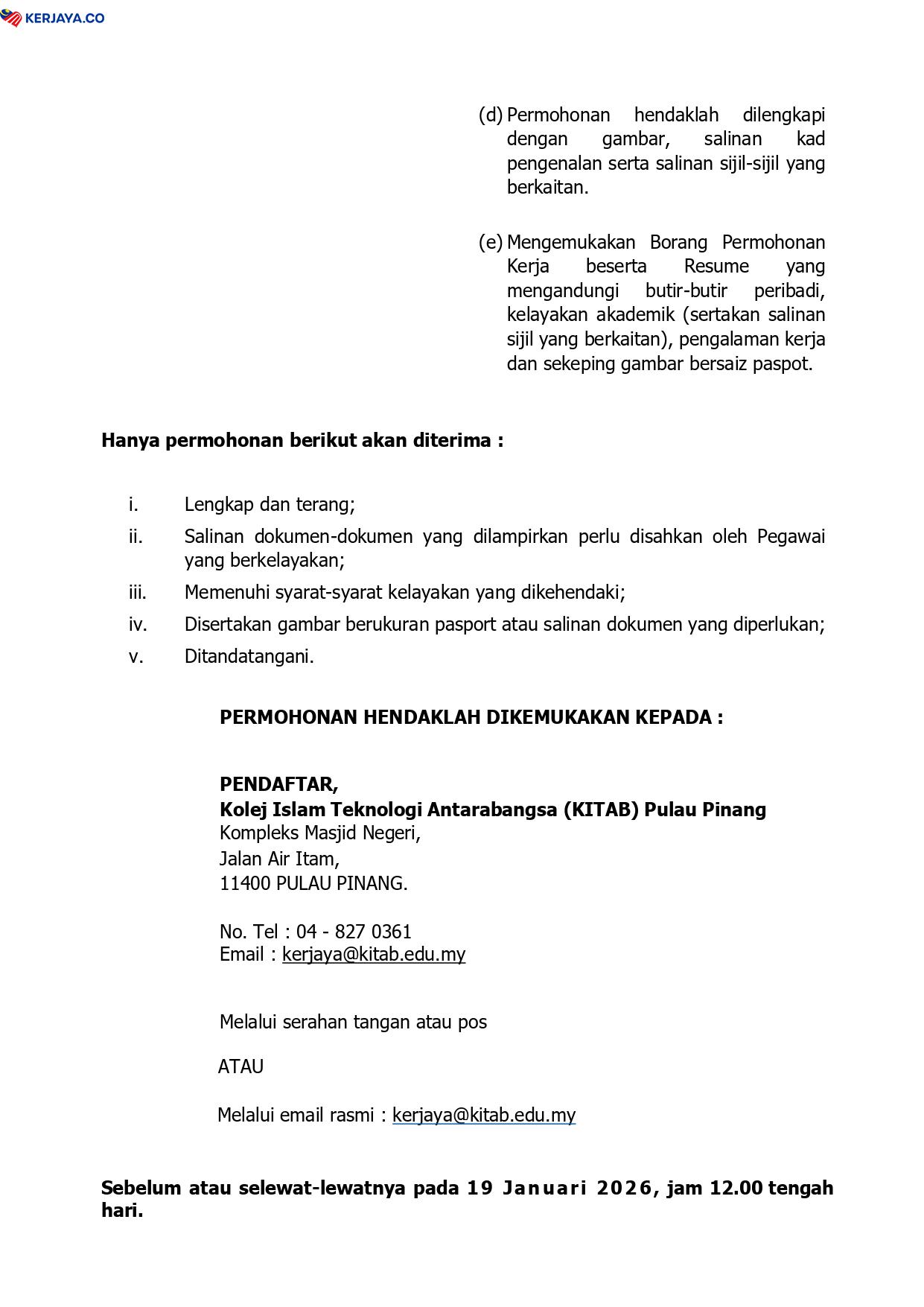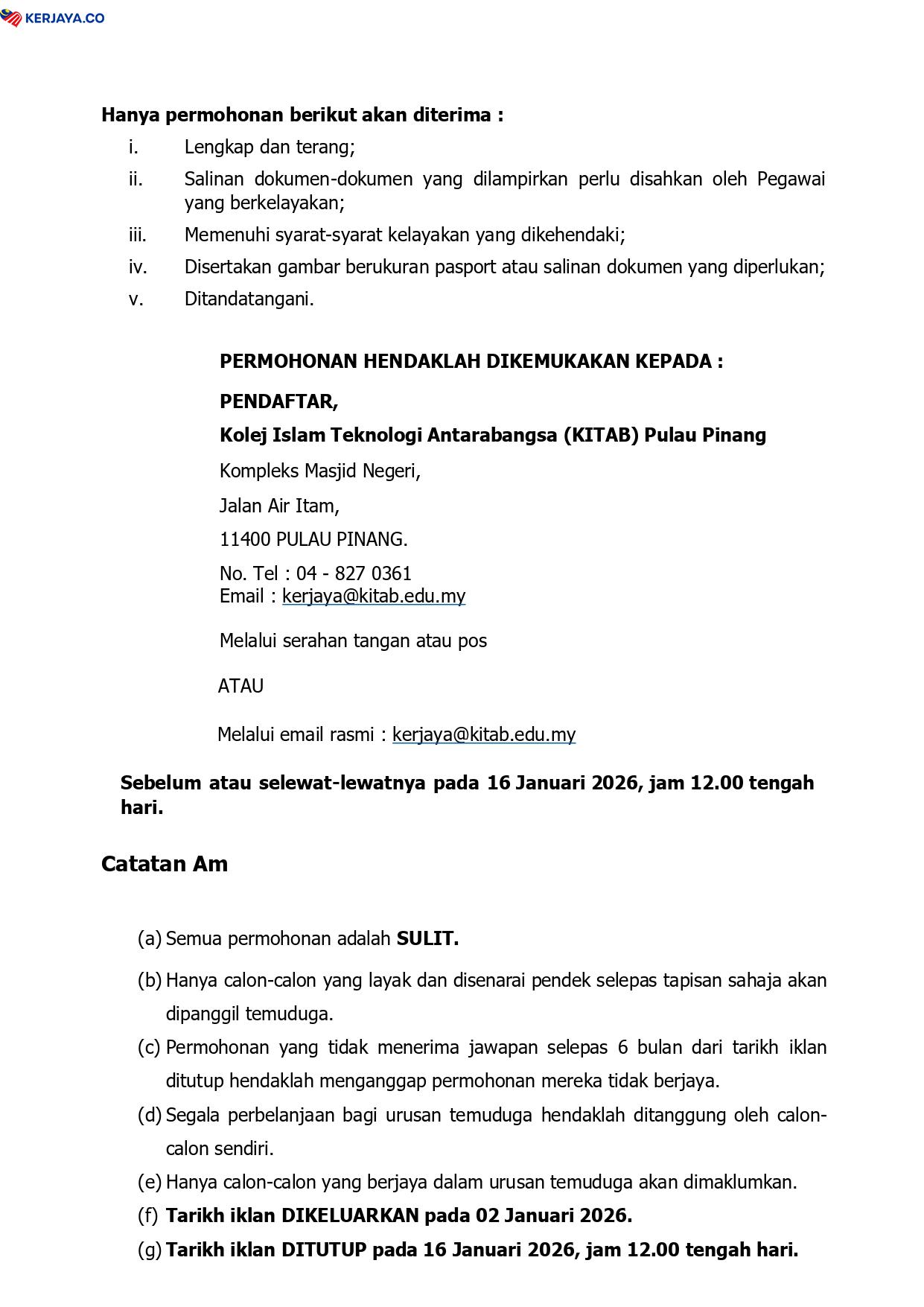 Iklan Jawatan Kolej Islam Teknologi Antarabangsa Pulau Pinang