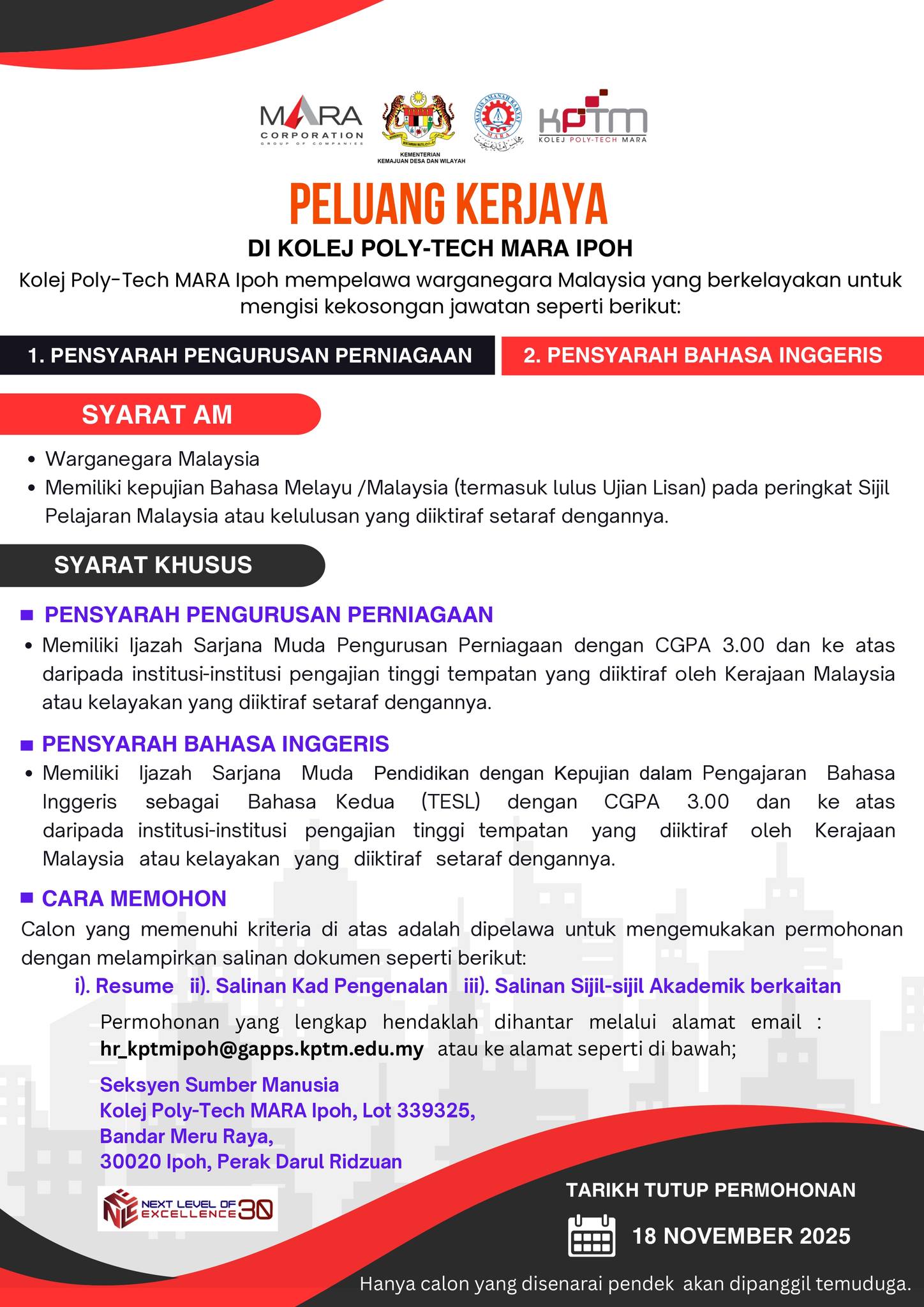 Iklan Jawatan Kolej Poly-Tech MARA (KPTM) Ipoh