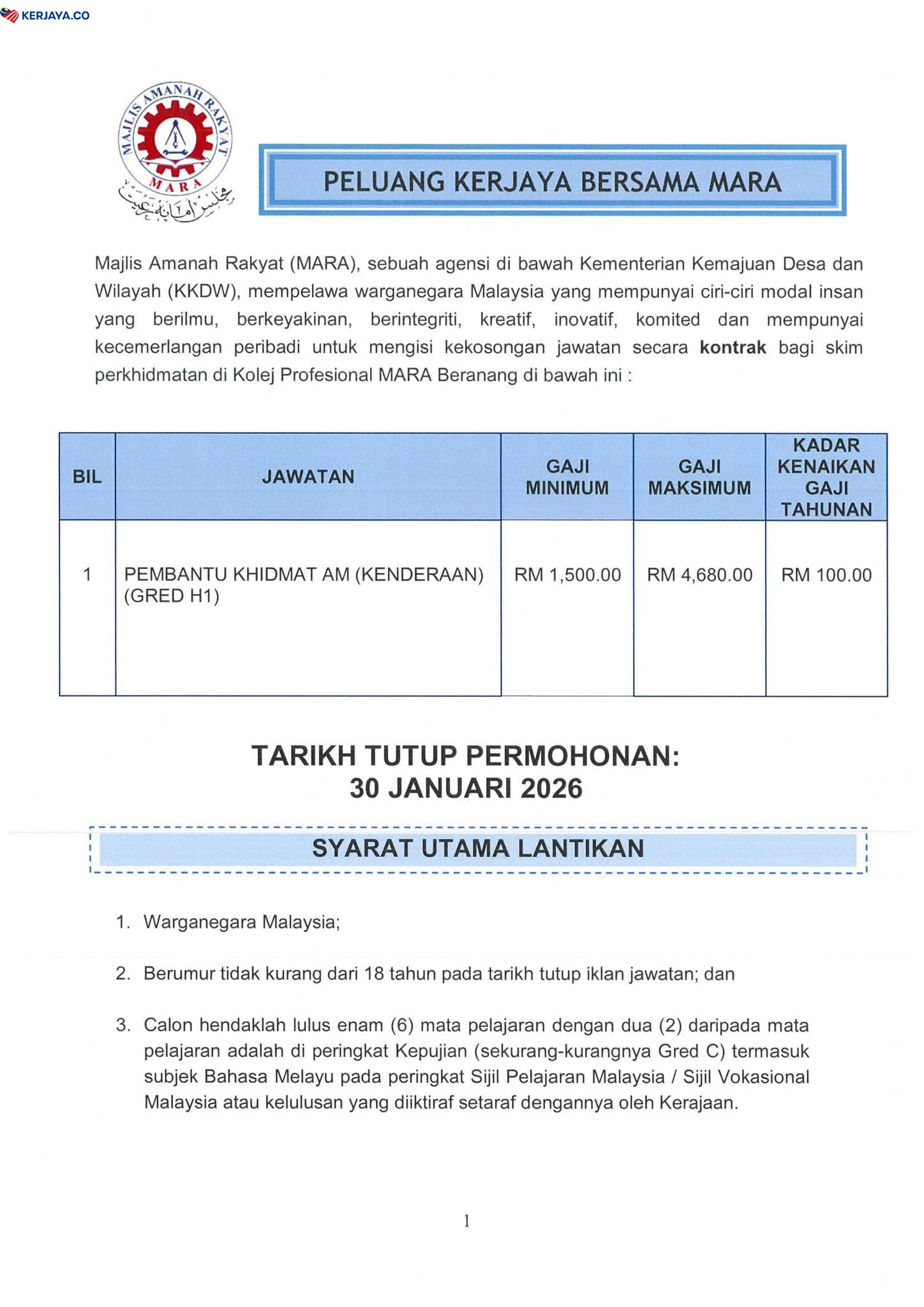 Iklan Jawatan Kolej Profesional MARA Beranang Selangor