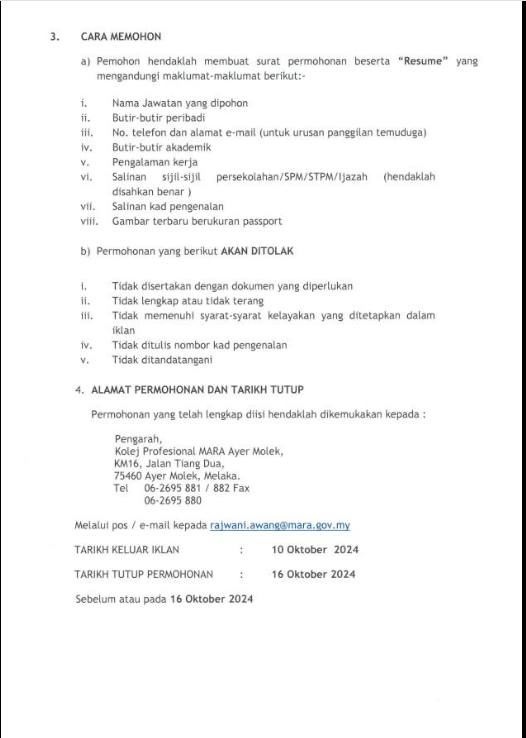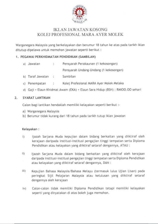 Iklan Jawatan Kolej Profesional MARA (KPM)