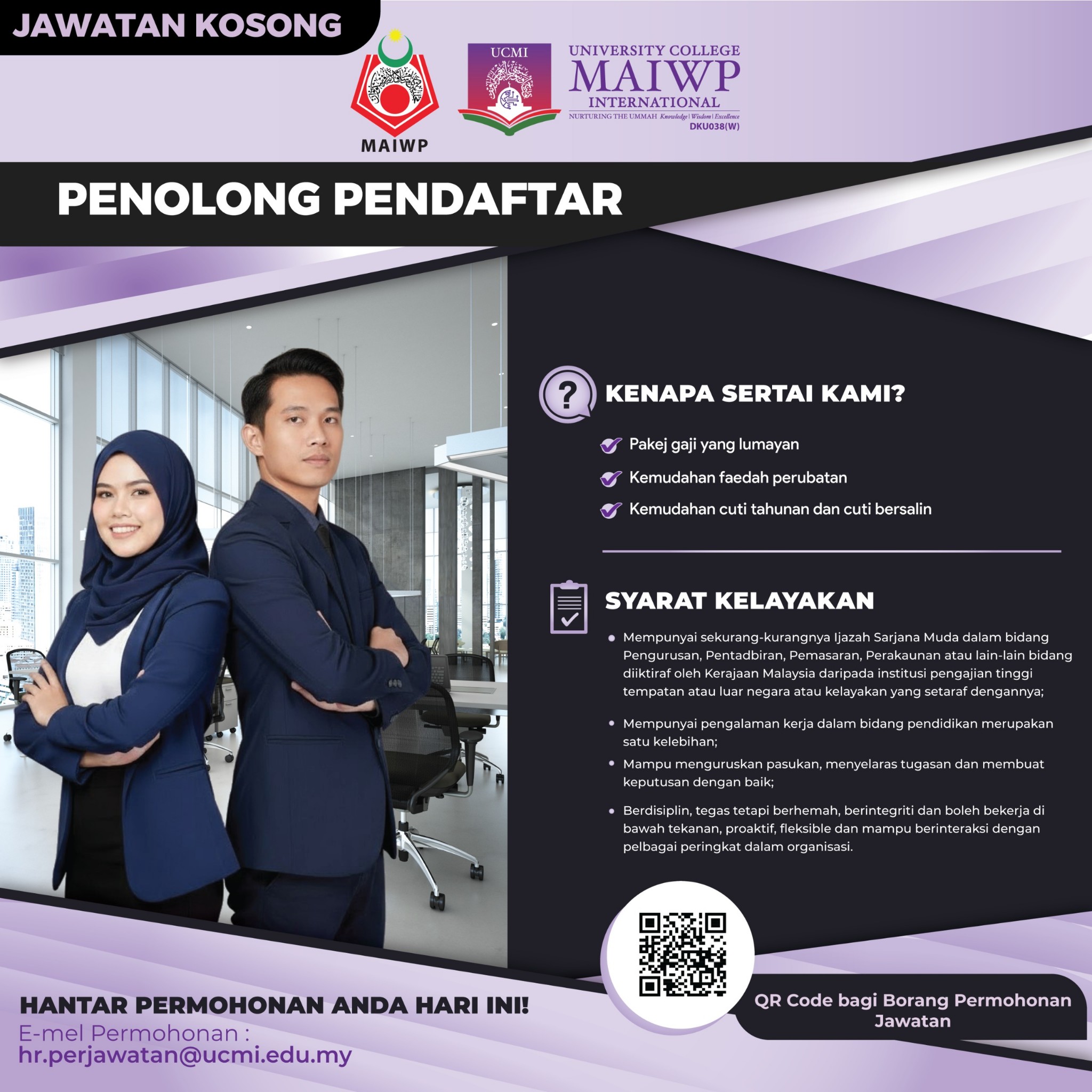 Iklan Jawatan Kolej Universiti Antarabangsa MAIWP (UCMI)
