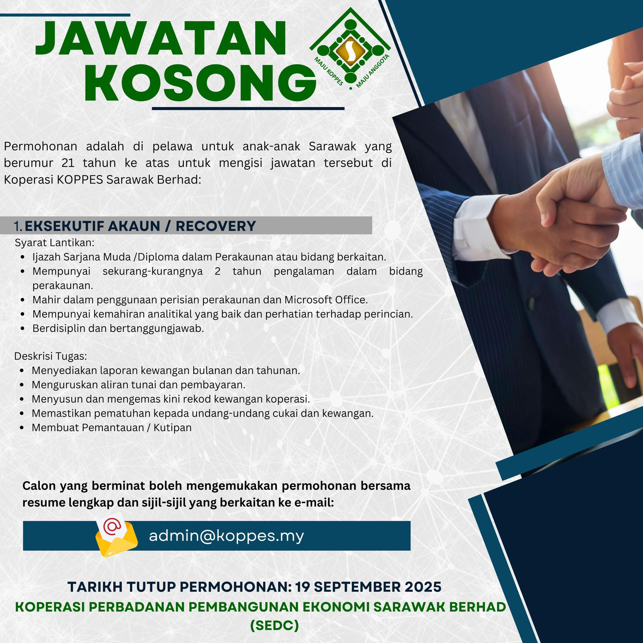 Iklan Jawatan Koperasi KOPPES Sarawak Berhad (Koperasi Perbadanan Ekonomi Sarawak Berhad (SEDC)) RUJUKAN IKLAN
