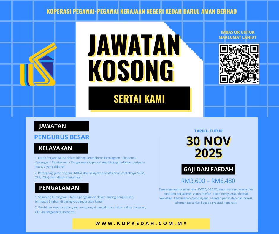 Iklan Jawatan Koperasi Pegawai-Pegawai Kerajaan Negeri Kedah Darul Aman Berhad