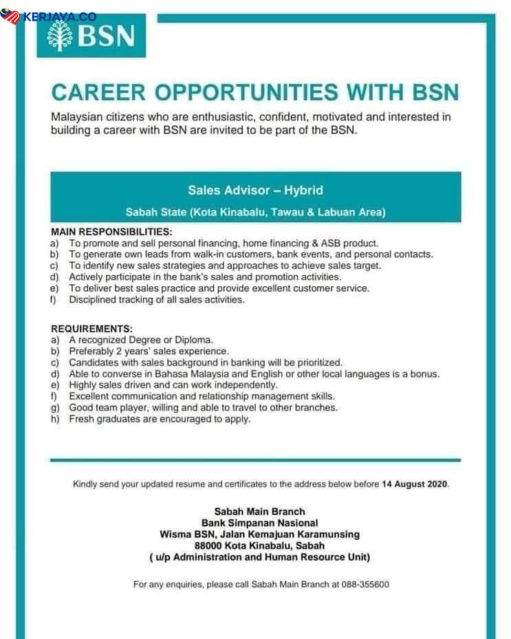 Iklan Jawatan Kosong Bank Simpanan Nasional (BSN)