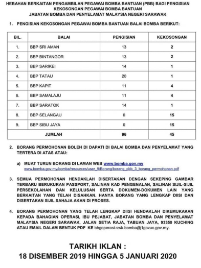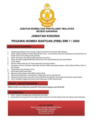 Iklan Jawatan Kosong BOMBA