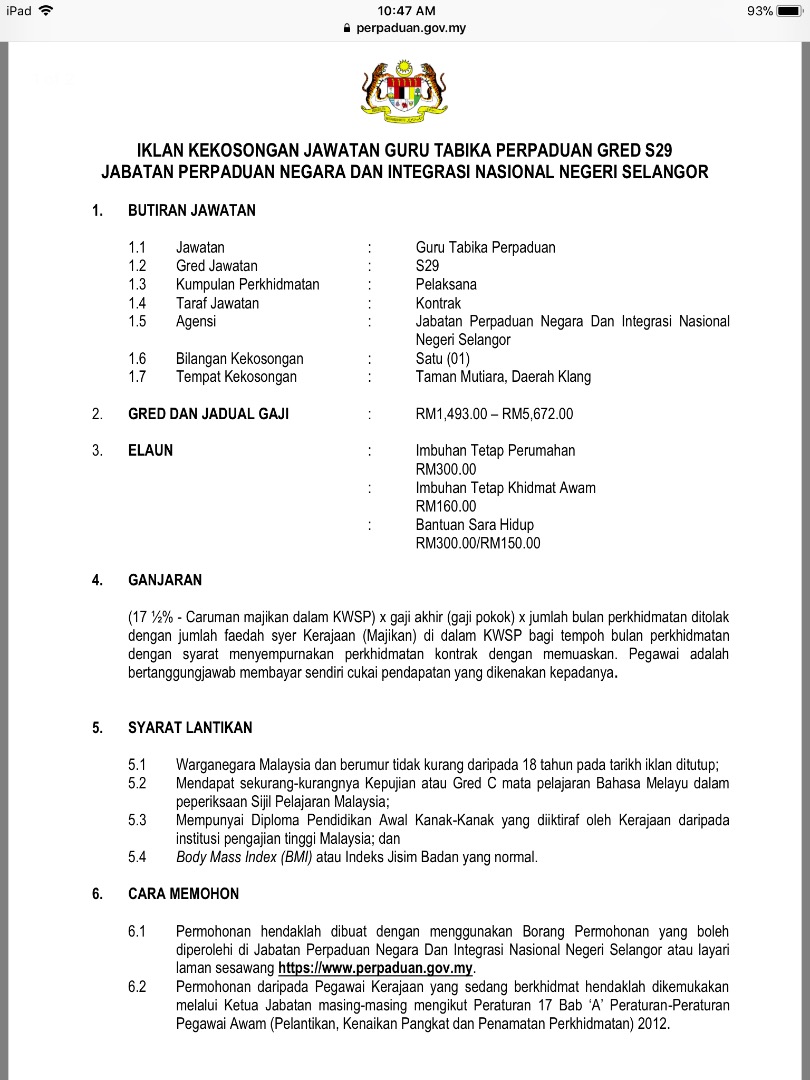 Berikut merupakan iklan jawatan yang dikeluarkan.