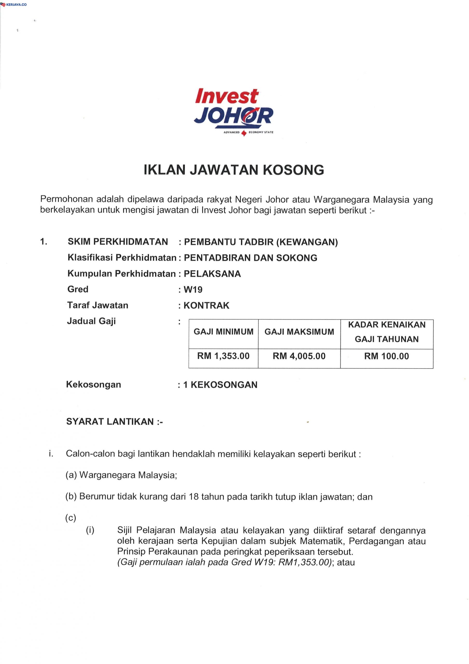 Iklan Jawatan Kosong Invest Johor