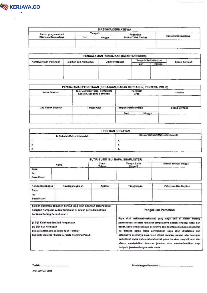 Iklan Jawatan Kosong Jabatan Kerja Raya Johor