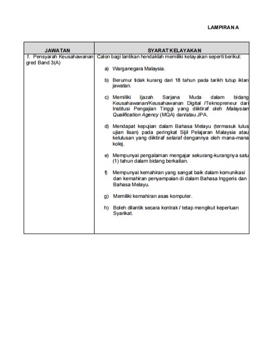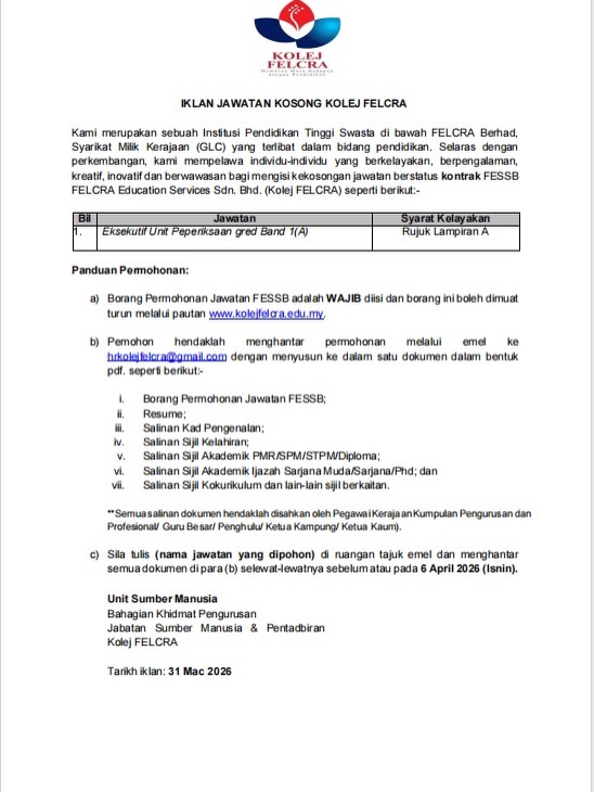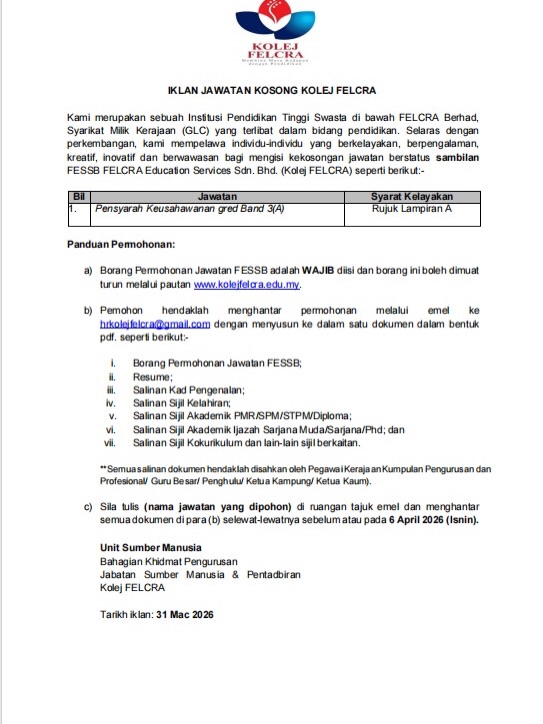 Portal Kerjaya / MANUAL / IKLAN JAWATAN KOSONG KOLEJ FELCRA