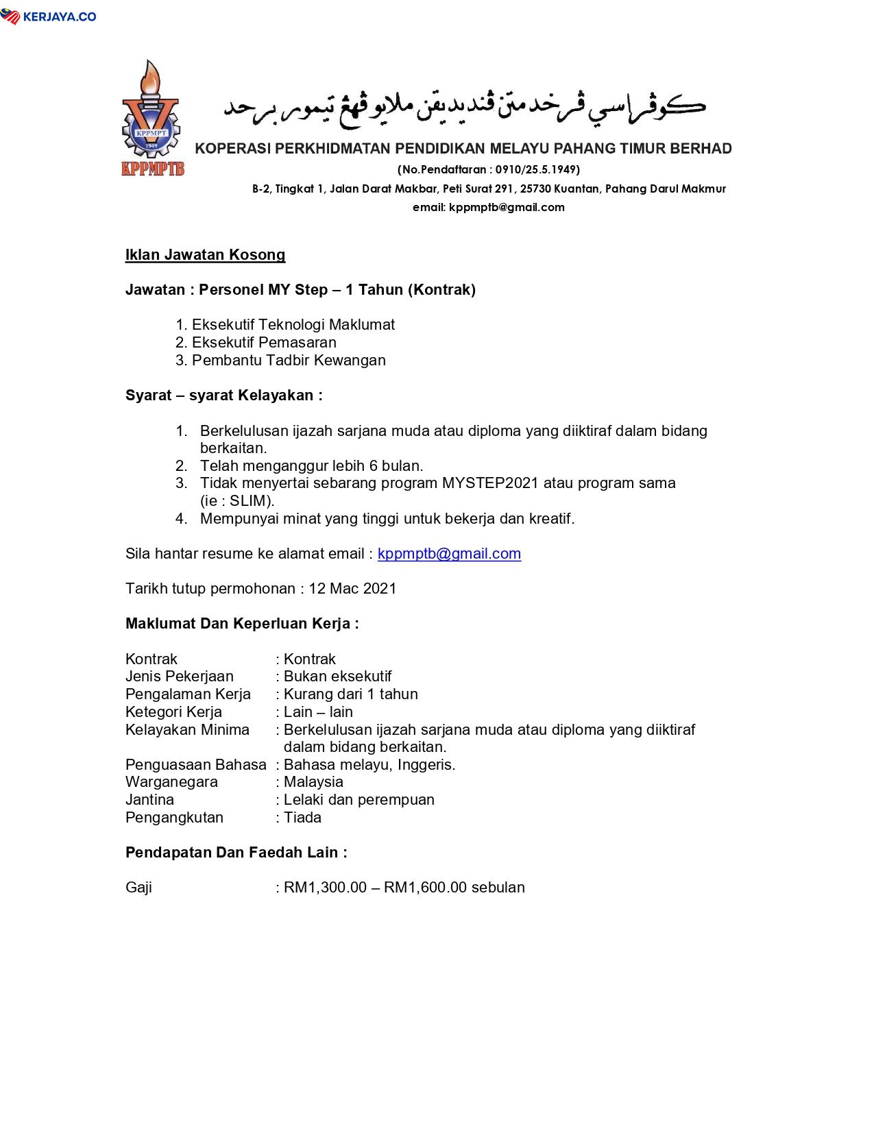 Iklan Jawatan Kosong Koperasi Perkhidmatan Pendidikan Melayu Pahang Timur Berhad