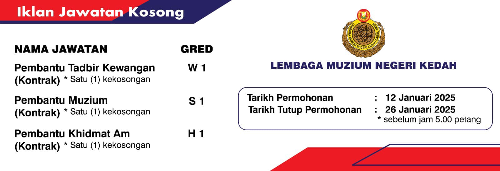 Iklan Jawatan Kosong Lembaga Muzium Negeri Kedah