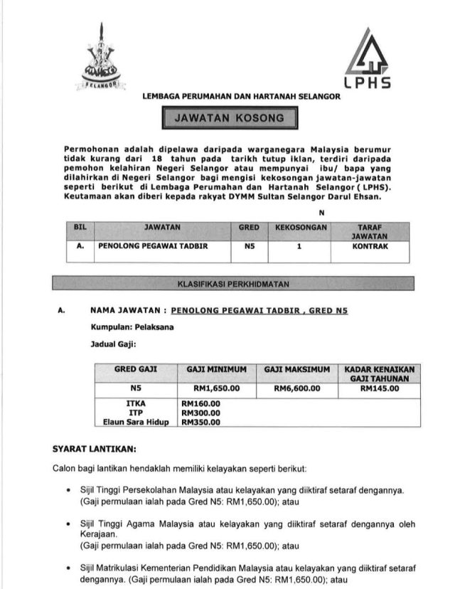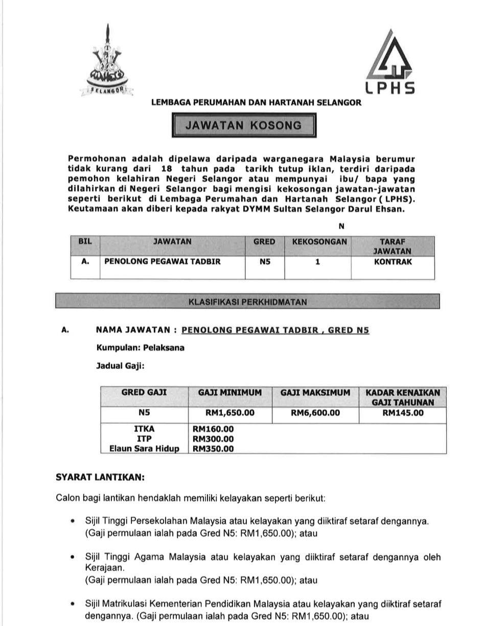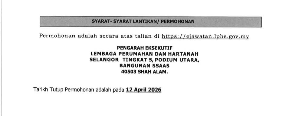 Iklan Jawatan Kosong Lembaga Perumahan dan Hartanah Selangor – LPHS