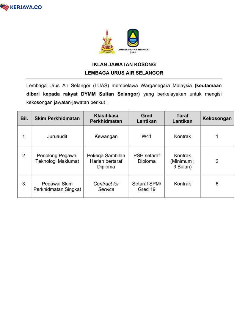 Iklan Jawatan Kosong Lembaga Urus Air Selangor (LUAS)