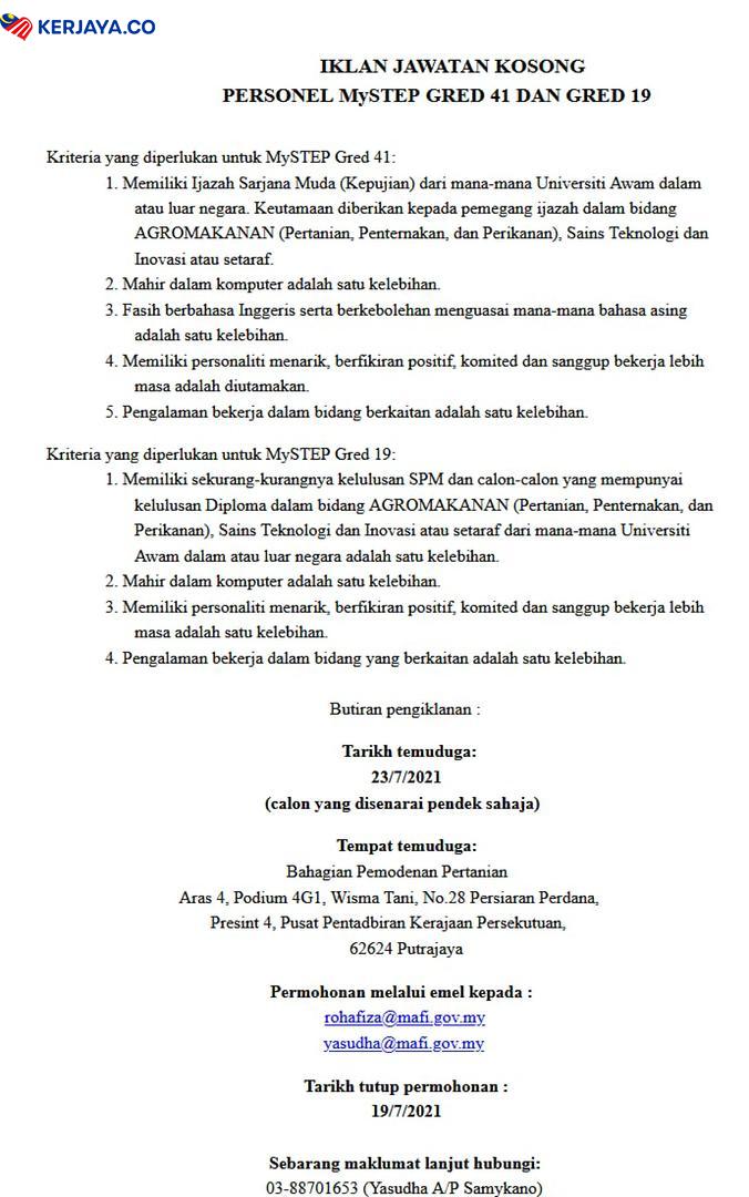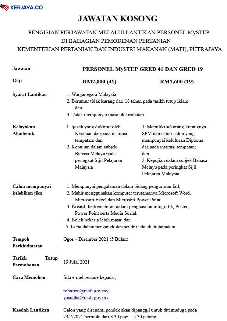 Iklan Jawatan Kosong Kementerian Pertanian Dan Industri Makanan (MAFI)