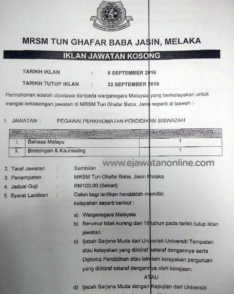 Return to "Iklan Jawatan Kosong Maktab Rendah Sains Mara (MRSM)" iklan-jawatan-kosong-mrsm-02 Previous
