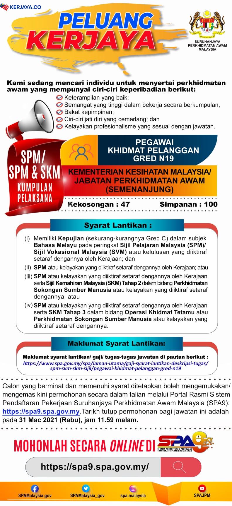 Iklan Jawatan Kosong Pegawai Khidmat Pelanggan Kementerian Kesihatan Malaysia (KKM)