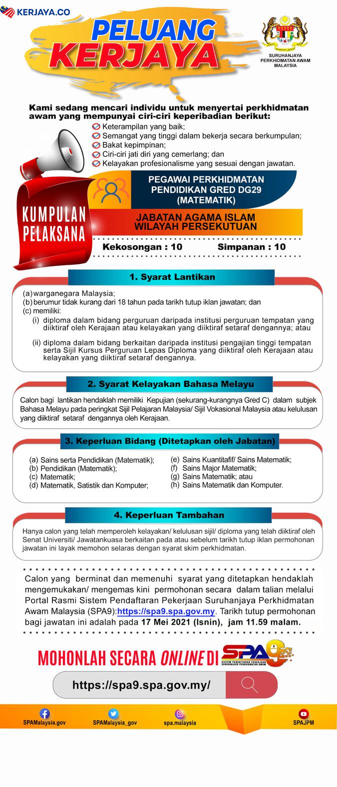 Iklan Jawatan Kosong Pegawai Perkhidmatan Pendidikan / Guru DG29