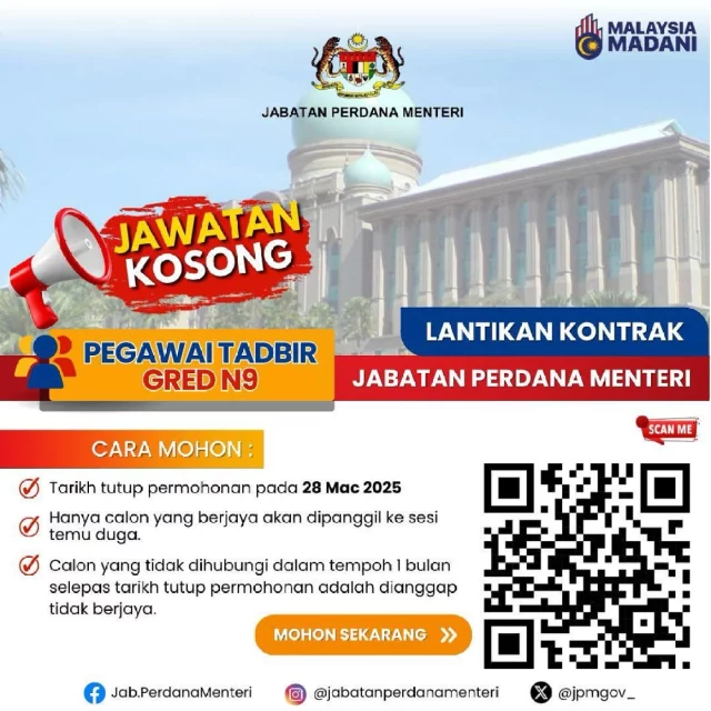 Iklan Jawatan Kosong Pegawai Tadbir N9 Jabatan Perdana Menteri