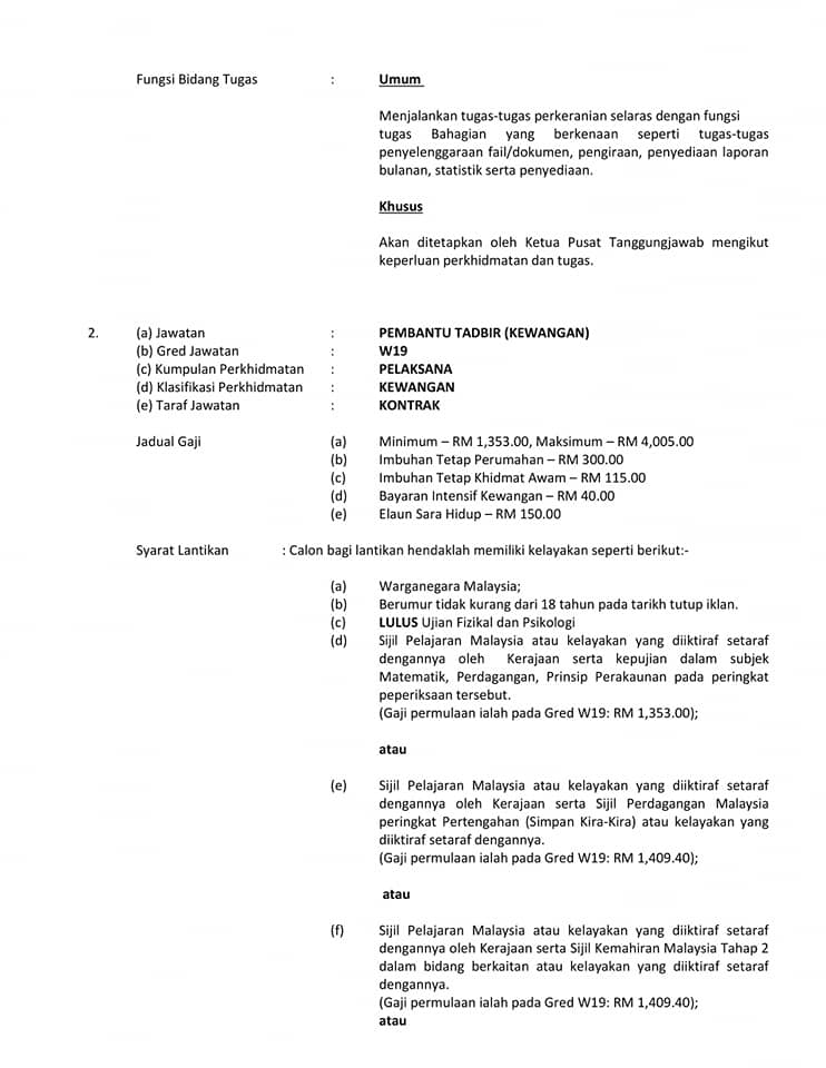 Berikut Merupakan Iklan Kekosongan Jawatan :