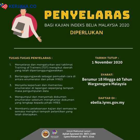 Iklan Jawatan Kosong Penyelaras Kajian Indeks Belia Malaysia