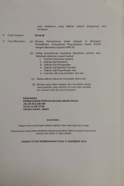 Iklan Jawatan Kosong Perbadanan Perpustakaan Awam Kedah (PPAK)