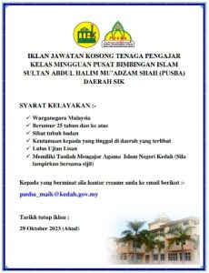 Iklan Jawatan Kosong Pusat Bimbingan Islam Sultan Abdul Halim Mua’dzam Shah (PUSBA)