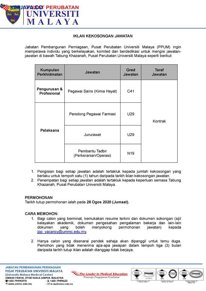 Iklan Jawatan Kosong Pusat Perubatan Universiti Malaya (PPUM)