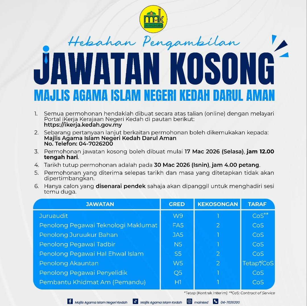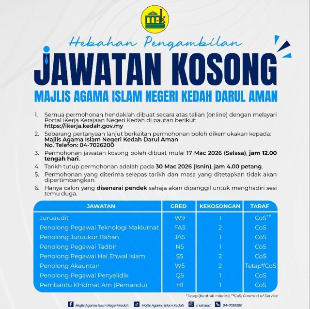 Iklan Jawatan Kosong Terkini Majlis Agama Islam Negeri Kedah (MAIK)