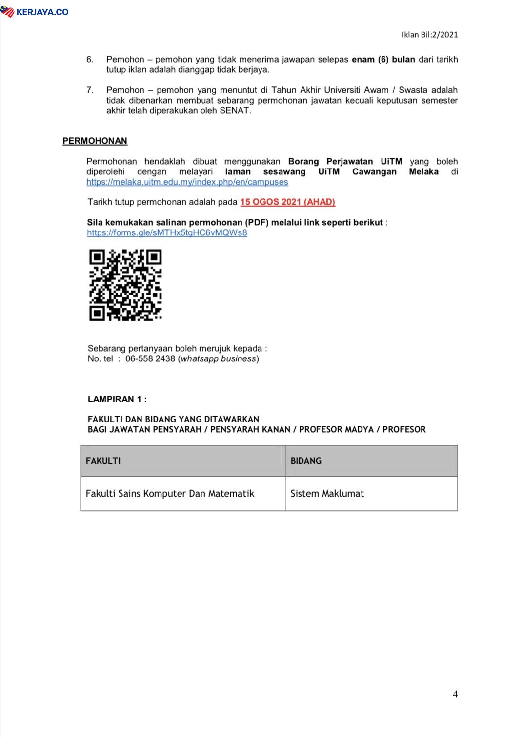 Iklan Jawatan Kosong Universiti Teknologi Mara (UiTM) Melaka