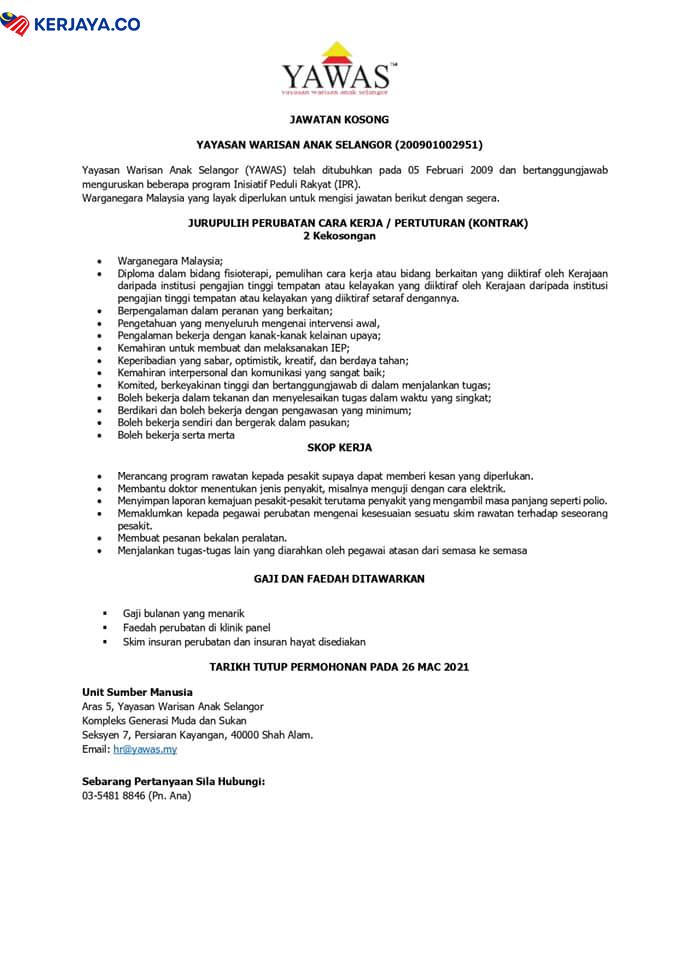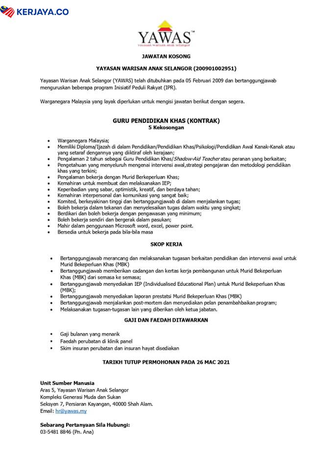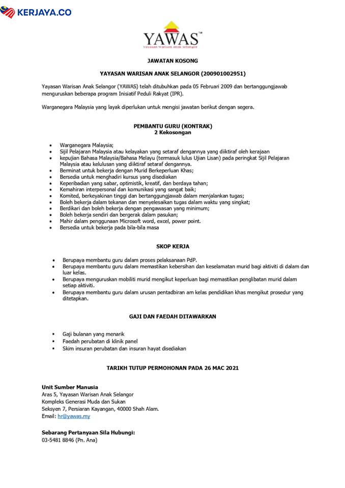 Iklan Jawatan Kosong Yayasan Warisan Anak Selangor