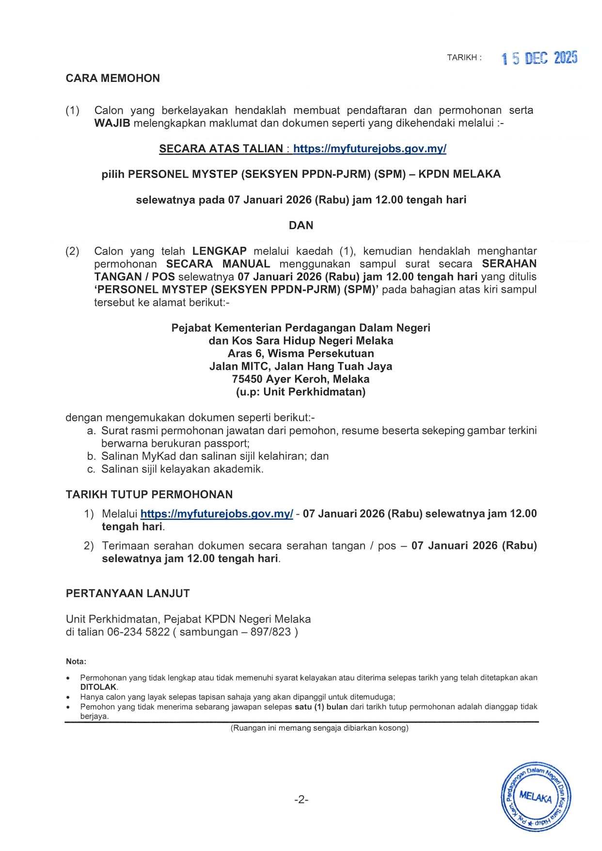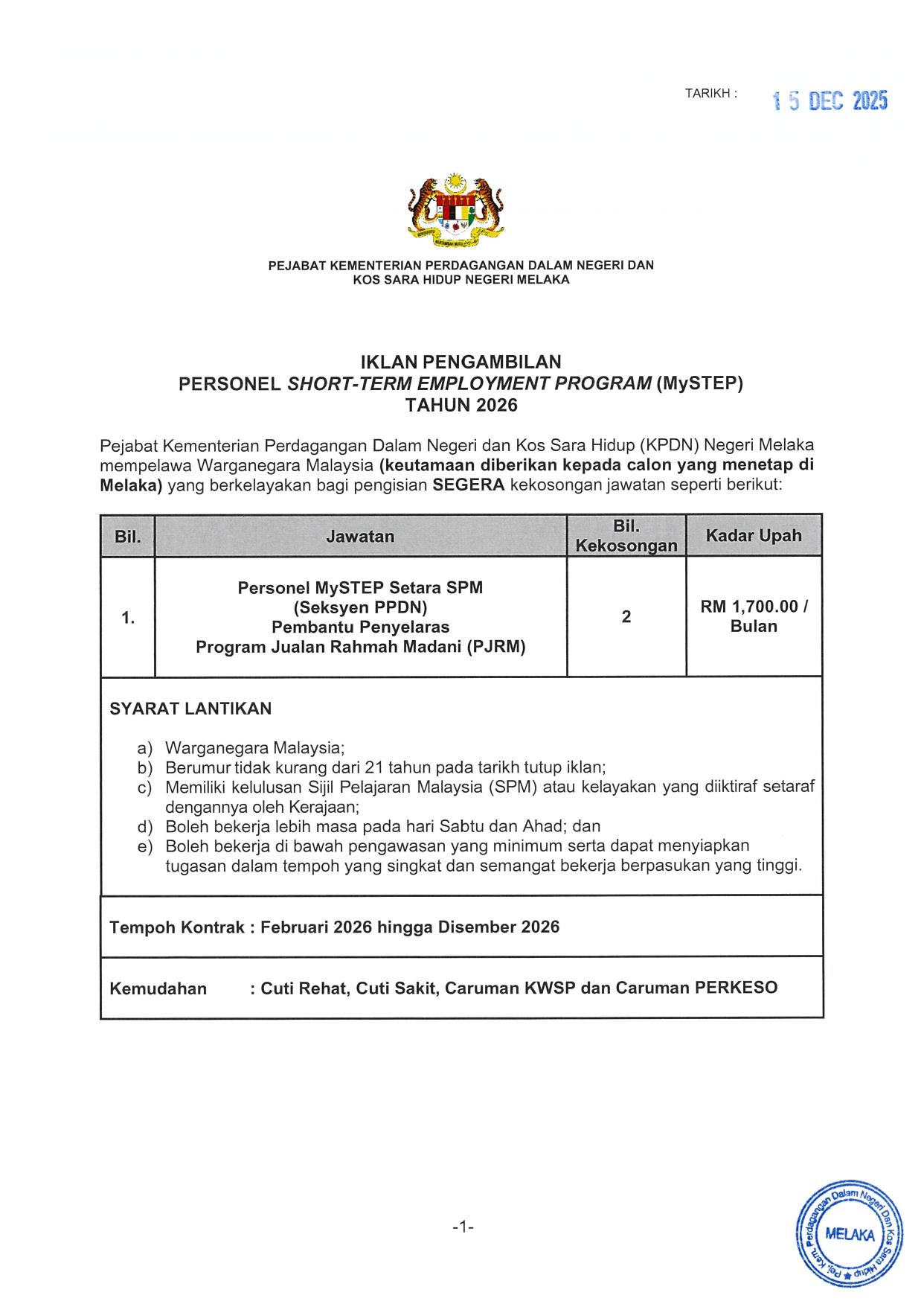Iklan Jawatan KPDN Melaka