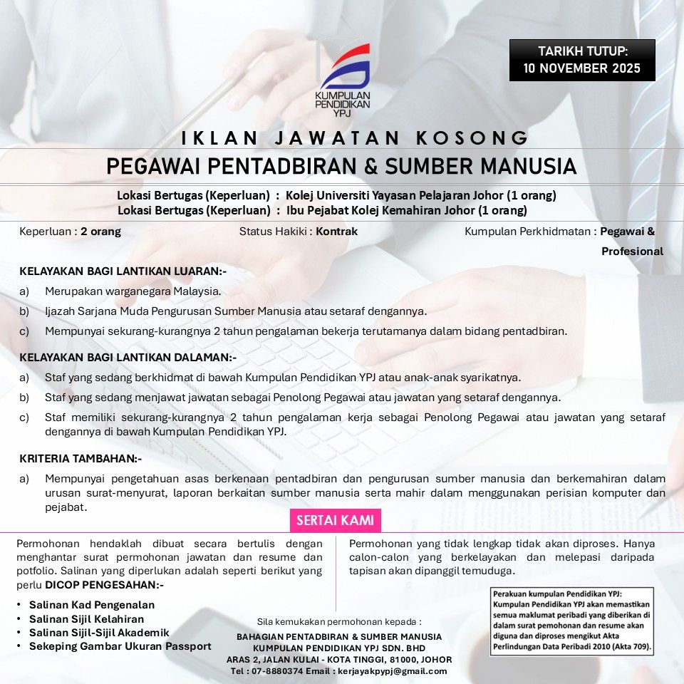 Return to "Iklan Jawatan Kumpulan Pendidikan YPJ"