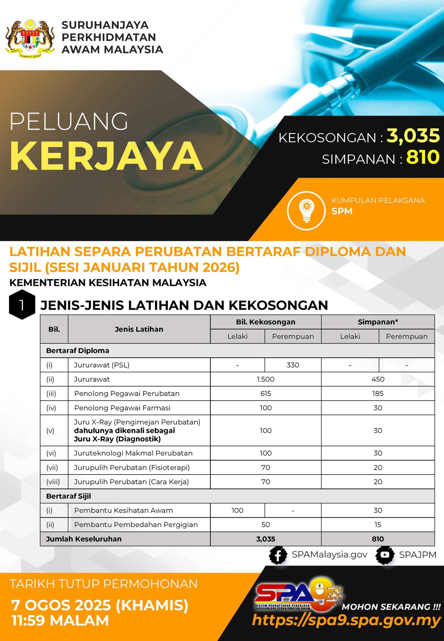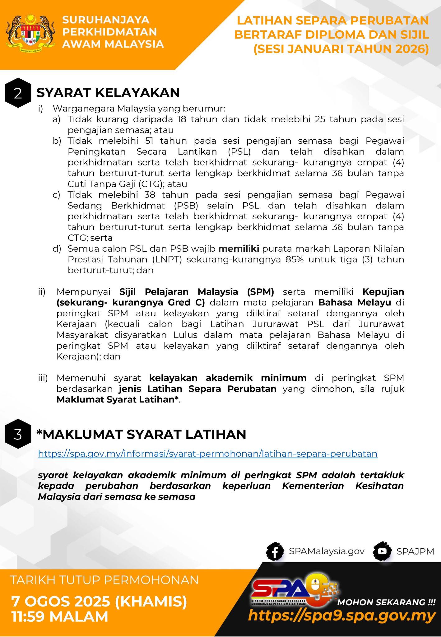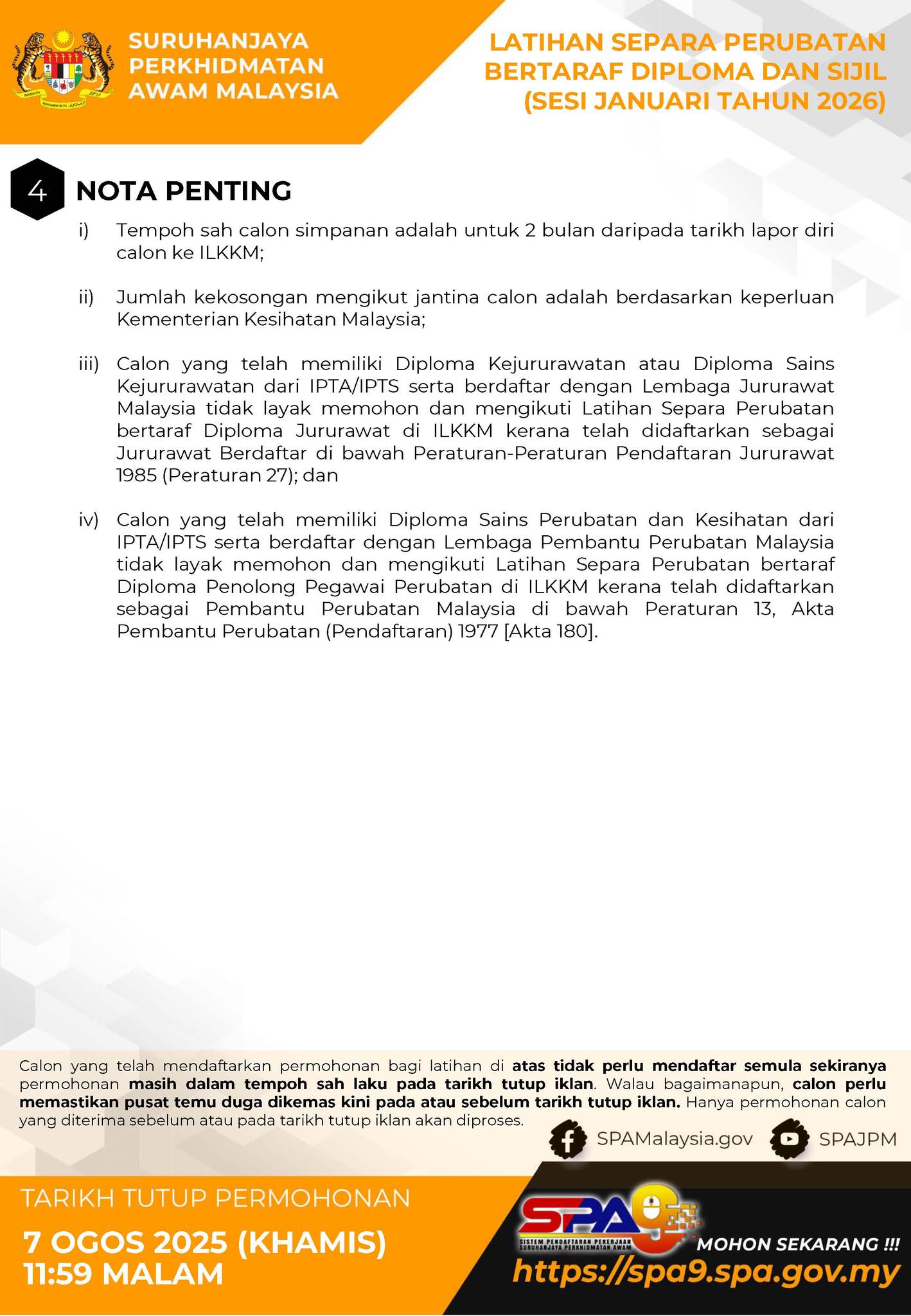 Iklan Jawatan Latihan Separa Perubatan Bertaraf Diploma Dan Sijil (Sesi Januari Tahun 2026), Kementerian Kesihatan Malaysia Kini Dibuka SYARAT LANTIKAN/PERMOHONAN