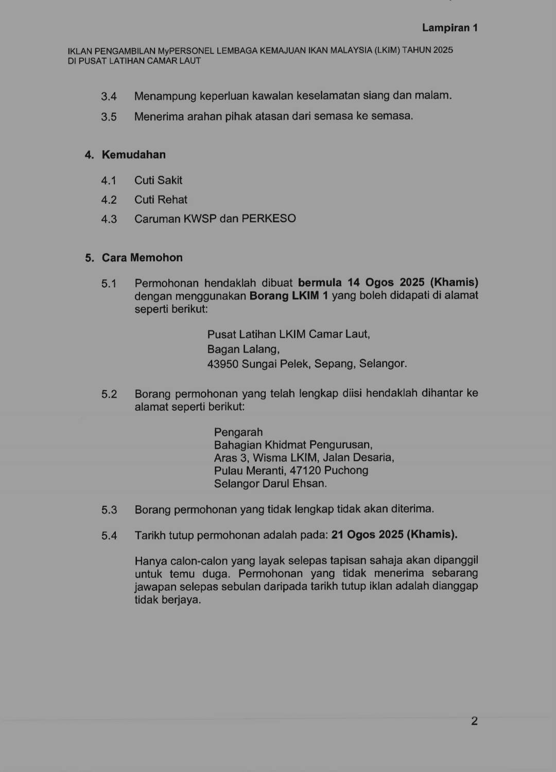 Iklan Jawatan Lembaga Kemajuan Ikan Malaysia (LKIM)
